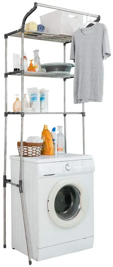 Kategorie: Badregale - Hershii - GTIN:6953925249013 - Raumsparend Das öffnungsregal mit 3 Ebenen, die eine große Speicherkapazität bieten, kann sein, um Waschmittel, Handtücher, Rollenpapier, kleine Körbe, Hautpflegeprodukte, Aromatherapie, grüne Pflanzen und mehr Badutensilien zu speichern.Das obere horizontale Stangendesign macht es einfach, Wäsche, Badetücher, Bademäntel, Kleiderbügel und so weiter zu hängen. Extra Stauraum Mit 6 kleinen Haken, die an der Seite installiert werden können, zur Verfügung, um Badekugel, Bürste, Handtuch und Kleiderbügel zu hängen. Jede Schicht hat eine transparente Kunststoffmatte (24 x 35 cm), um zu verhindern, dass Reinigungsprodukte, Waschmittel, Shampoo usw. kleine Gegenstände herunterfallen. Leicht zu montieren Das Paket mit der Illustration Anleitung und Werkzeuge, folgen Sie einfach die Schritt-für-Schritt-Anleitung in der Anleitung, um es fertig zu machen. Alle Rohrverbindungsteile sind doppelt mit Schrauben und Kunststoffschnapper befestigt, was diesen Toilettenständer stabil macht. Mehrzweckregal Der Platz über der Waschmaschine kann genutzt werden, ohne Platz in Ihrem Badezimmer zu verschwenden, kann auch über einem Trockner, über einem Wäschekorb oder einer Toilette platziert werden. Geeignet für Bad, Balkon, Garage, Hauswirtschaftsraum, Hausgebrauch. Macht Ihr Zimmer sieht ordentlich und aufgeräumt. Tolles Geschenk für Freundschaftsgeschenke, Hochzeitsgeschenke, Innendekoration. Spezifikation Das Regal ist aus silbernem ... Dieser ausziehbare und klappbare Wäscheständer mit 3 Ebenen und 30 Kleiderstangen ist eine platzsparende und vielseitige Option für große Wäschemengen. ![]() ![]()
