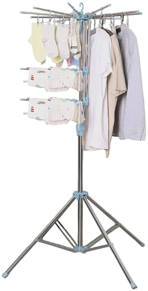 Gewöhnlich versandfertig in 7 bis 8 TagenHershii Wäscheständer Ausziehbar Kleiderständer Klappbar Platzsparend 3 Ebenen Garderobenständer Wäscheklammern und 30 Stück Kleiderstangen für Kleideraufbewahrung,Höhenverstellbar 110~170cm Edelstahl