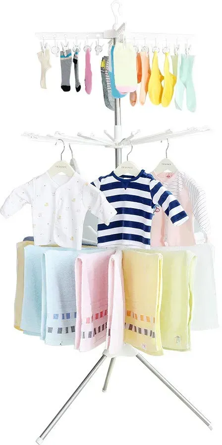 Gewöhnlich versandfertig in 7 bis 8 TagenHershii 3 Etagen Wäscheständer Klappbarer Kleiderständer mit 24 Wäscheklammern und 32 Handtuchhalter,Trockengestell drehen für Unterwäsche, Bar, Socken, Handtuchtrockner Drinnen draußen,Elfenbein