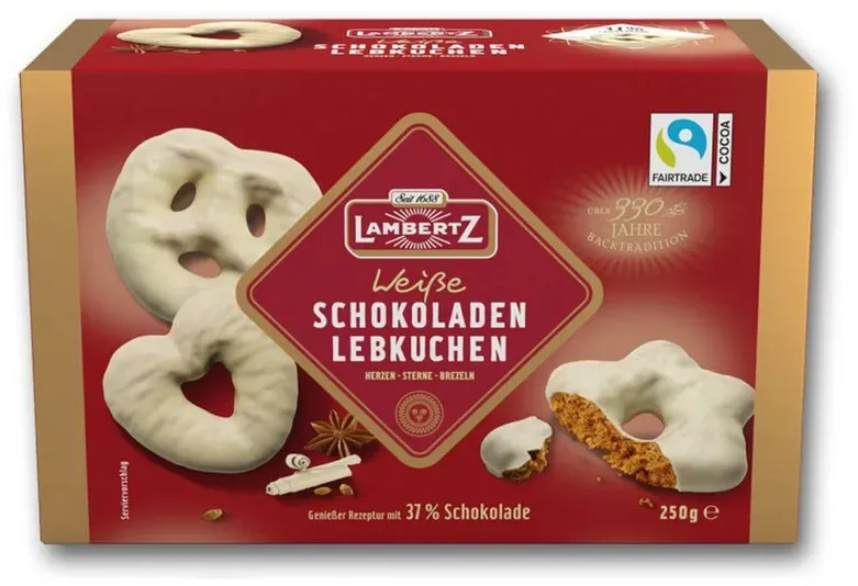 Zustand: Neu - 11,99 € / kg - Kuchen & Torten - Weiss Max Weiss Lebkuchenfabrik Neu-Ulm GmbH Messerschmittstr. 28 89231 Neu-Ulm (D) - - EAN: 4003160111001 - Set Lebkuchen: 1x 500 g Vollmlich +1 x 500 g Zartbitter Herzen , Sterne , Brezeln - Verkäufer: AachenerPrintenVersandde im amazon.de Marketplace Dieses Lambertz-Angebot ist eine gute Option für eine größere Menge Zartbitter-Lebkuchen mit langem MHD. ![]() ![]() Lambertz Schokoladen - Lebkuchen Zartbitter eBay Herzen Sterne Brezeln 6x500g MHD:04/26