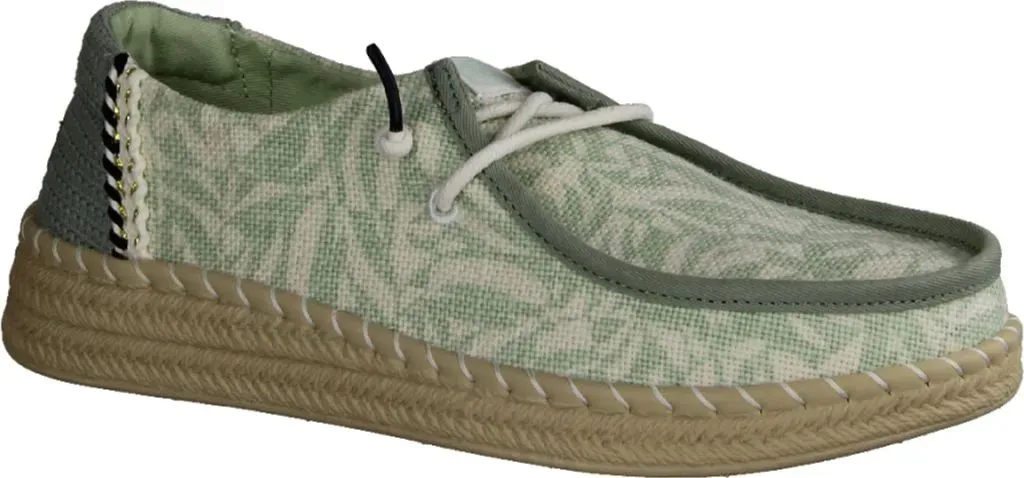 3 Händlerangebote bei billiger.de - Kategorie: Halbschuhe - HEYDUDE - Der Strand ruft, und diese entspannten Halbschuhe werden dich mit ultimativen 'Island Vibes' dorthin führen. Genauso entspannt, wie sie aussehen, sind sie auch an deinen Füßen. Genau das, was du von HEYDUDE erwartest. Das luftige Obermaterial aus gewebtem Textil, komplett mit einem exotischen Palmendruck, verleiht einen paradiesischen Look, unterstützt von einer espadrille-inspirierten Sohle. Kombiniere sie mit deinem Strandoutfit und spaziere stilvoll und bequem von der Promenade zur Strandbar und zurück zu deinem Hotel. Perfekt für dein nächstes sommerliches Abenteuer. Hey Dude perfekt für jede Gelegenheit Hey Dude designt in Italien Das italienische Unternehmen Hey Dude produziert bequeme und ultraleichte Schuhe für trendige Menschen. Hierzu werden neueste revolutionäre Technologien und modernste Techniken aus der Schuhindustrie eingesetzt. Die angesagten Schuhe sind aus hochwertigen Materialien und bieten maximalen Komfort. Der Wendy Espadrille ist ein superleichter Slip On der mit elastischen Senkeln ausgestattet ist. Diese erweisen sich beim An-und Ausziehen als äusserst praktisch. Der Freizeitschuh besteht aus einem textilen Obermaterial und einem Baumwoll-Innenfutter. Am Fersenrand ist der sommerliche Low-Cut mit einer komfortablen Polsterung ausgestattet, welche lästiges Reiben verhindert. Beste Passform verspricht die Schuhspitze die sich Deinem Fuß anpasst. Logo-Pads und goldene Stickereien ... ![]() ![]() HEYDUDE Hey Dude Wendy 33412-36, 33412-37, 33412-38, 33412-39, 33412-40, 33412-41 HEY-43179 green/white - 41