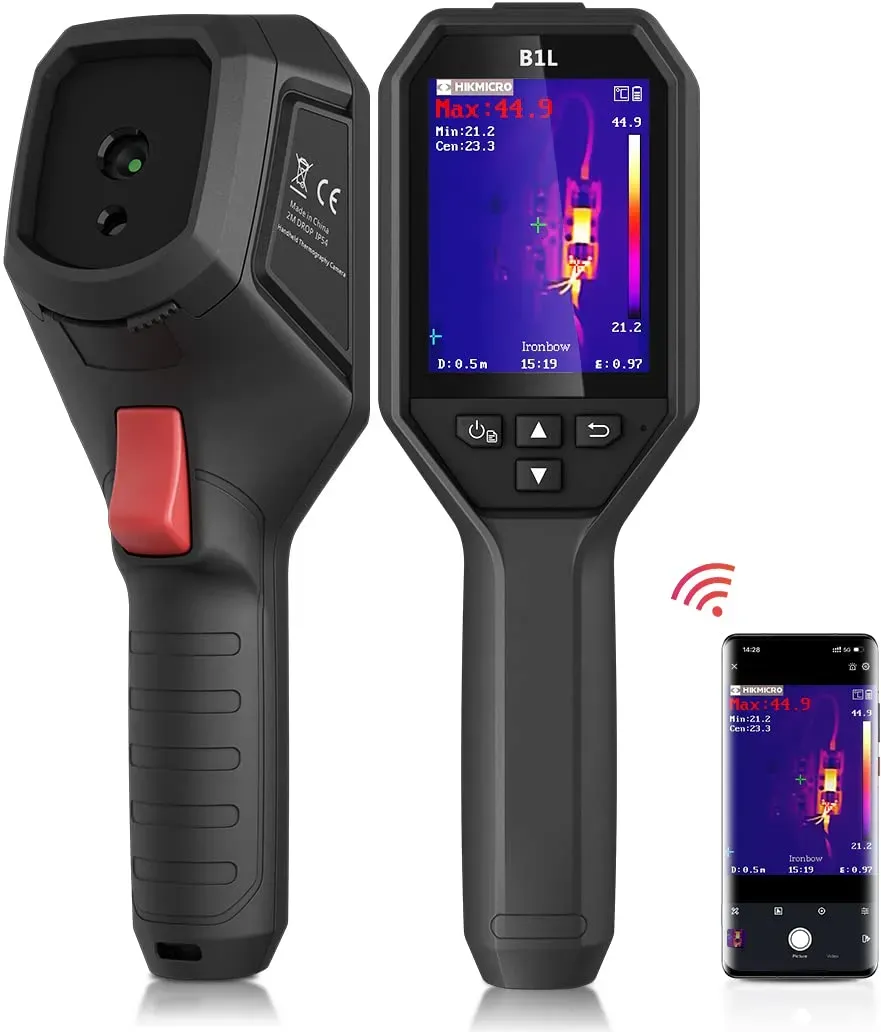 Auf Lager Versand durch AmazonHIKMICRO B1L Wärmebildkamera mit 160 x 120/19200 IR-Auflösung, WLAN, 25Hz Bildfrequenz, 3,2" LCD, kompakte Infrarot-thermokamera mit Hochtemperaturalarm, Software, Messbereich-4°F~1022°F