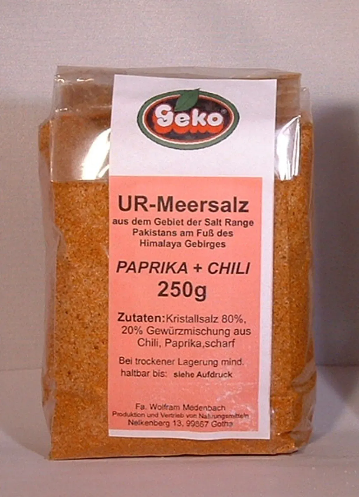 Kategorie: Kräuter & Gewürze - GEKO - GTIN:4260015651727 - Grundpreis: 1,56 /100g Salz/Salzmischungen - Himalayasalz* Nachfüllbeutel Ohne künstliche Aromen und Konservierungsstoffe, Glutenfrei Mindestens haltbar: 18 Monate - 1,65 Euro bei Amazon Marketplace Health & Personal Care - gefunden von billiger.de Dieses Himalayasalz mit Paprika und Chili ist eine würzige Alternative für alle, die ihren Gerichten eine besondere Note verleihen möchten. ![]() ![]() "GEKO" Salz-/Salzmischungen mit Himalayasalz aus der Salt Range Pakistan, im Nachfüllbeutel - OVP 0 (Himalayasalz aus der Salt Range Pakistan mit PAPRIKA + CHILI 250g)