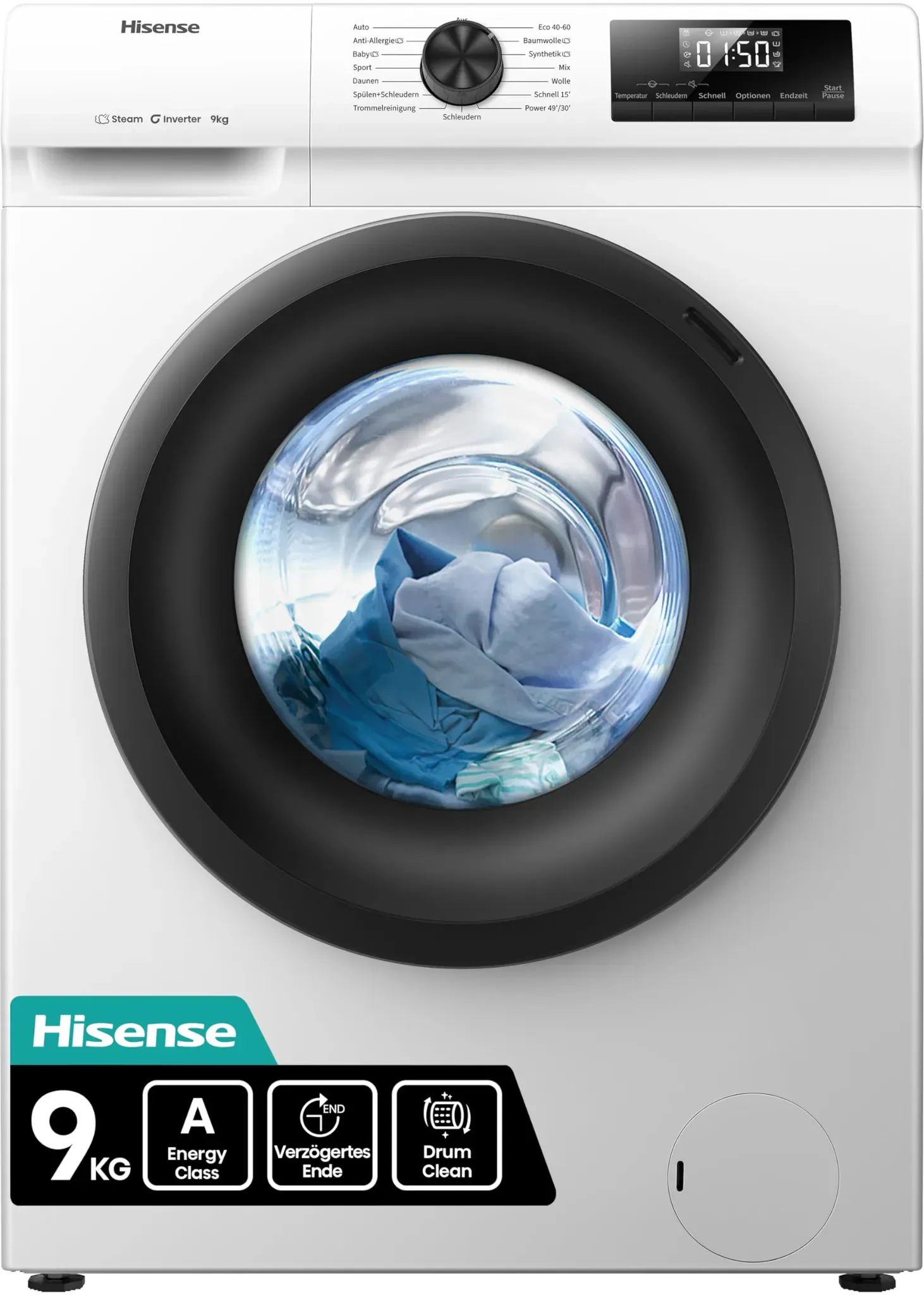 Zustand: Gebraucht - Top Brands Home Appliances - Hisense - WF3S1043BB3 - EAN: 6901101830975 - Langlebiger Invertermotor: Dieser leistungsstarke bürstenlose Motor mit der neuen Generation von Elektronik ist äußerst effizient und bietet eine bessere Reinigungswirkung, spart Energie und erzeugt weniger Lärm Selbstdiagnose: Im äußerst unwahrscheinlichen Fall einer Fehlfunktion geben die Selbstdiagnosetools sofort einen eindeutigen Fehlercode an, den Sie leicht im Benutzerhandbuch finden können; dies ermöglicht eine schnelle und bequeme Fehlerbehebung, die Ihnen Zeit und Stress erspart und die Sicherheit für Sie und Ihr Gerät gewährleistet Autowäsche: Verwenden Sie die Auto-Funktion, um Ihre Wäsche automatisch zu erkennen und die Waschzyklen für eine maßgeschneiderte Wäsche anzupassen; das Auto-Programm ist für eine kleinere Ladung gemischter Wäsche; das praktische Programm sorgt außerdem dafür, dass die Wäsche so schnell wie möglich gewaschen wird, ohne dass manuelle Eingriffe erforderlich sind Quick Wash: Das Schnellwaschprogramm verkürzt deutlich die Wartezeit und ist für die leicht verschmutze Wäsche; waschen Sie bis zu 1 kg Wäsche in nur 15 Minuten: Es ist ungefähr so lange, wie Sie zum Duschen oder Frühstücken brauchen würden Smart Assist: Die Auswahl des richtigen Programms für Ihre Wäsche kann eine Herausforderung sein, muss es aber nicht; durch die Auswahl von Stoffart, Farbe und Verschmutzungsgrad wählt die Smart Assist-Funktion die Kombination aus Temperatur, Zeit ... Eine preisgünstige Waschmaschine mit guter Kapazität für kleinere Haushalte. ![]() ![]() Hisense WF1Q9041BW Waschmaschine (9 kg, 1400 U/min)
