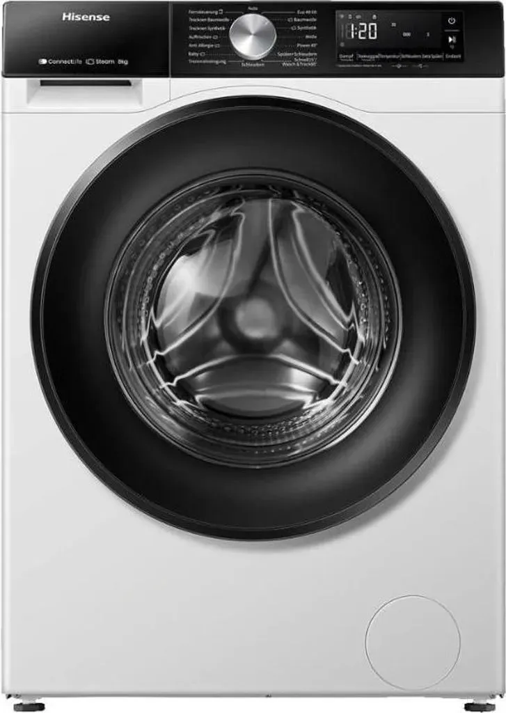 keine Angabe (Amazon Prime) Auf Lager Versand durch AmazonHisense WF3S8043BW3 Waschmachine mit Dampffunkunktion, 8 kg, 1400 U,min, WIFI, ConnectLife, Power JetWash, Anti-Allergie Programm, Aqua Stop, Auto Wash, Quick Wash, EEK A-30 Prozent