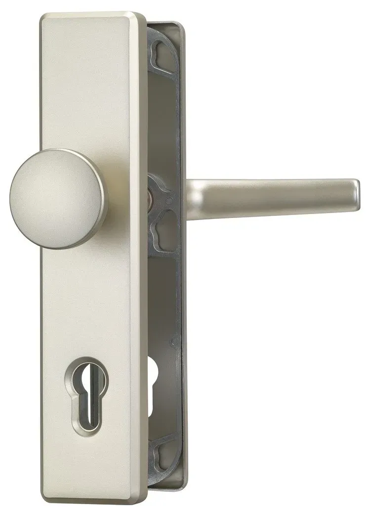 48.14 / Stück - Kategorie: Türbeschläge - ABUS - GTIN:4003318083037 - Türschutzbeschlag ohne Zylinderschutz - Klasse ES0 -Für Hauseingangstüren (HLS) oder Wohnungsabschlusstüren (KLS) - für Zylinderüberstand 15 mm -HLS: geeignet für Türstärken von 52-67 mm -KLS: geeignet für Türstärken von 37-47 mm - HLS: Abstand: 92 mm, Vierkantstift: 10 mm - KLS: Abstand: 72 mm, Vierkantstift: 8 mm Nach DIN EN 1906 SK 1 und DIN 18 257 ES 0 Erhöhter Abreißschutz: Stabile Nocken plus Innenverschraubungen Bewährte Schichtbauweise: Metallunterschild plus Leichtmetall-Deckschild Schildstärke außen: 15 mm Schildstärke innen: 8 mm - Farben: F1 (aluminium), F2 (neusilber), F3 (Aluminium messing), F4 (Aluminium bronze), F9 (Alu Edelstahl-Look) - Wechselgarnitur (WG): Knopf außen, Drücker innen - Beidseitig Drücker (DD.): Drücker außen, Drücker innen Aufpreis für Befestigungsmaterial für abweichende Türstärken auf Anfrage per E-Mail möglich - 48,14 Euro bei Ludwig Ohlendorf - gefunden von billiger.de Ein ABUS Türschutzbeschlag HLS214 WG (Wechselgarnitur) in F9, der eine beliebte Ausführung darstellt. ![]() ![]()