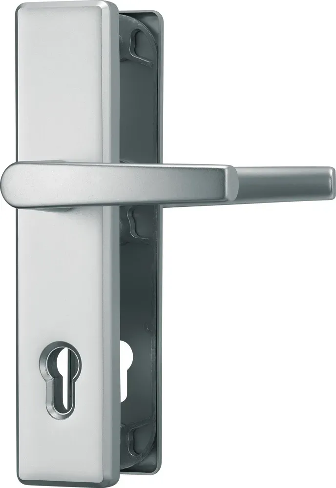 lieferbar-in 6-7 Werktagen bei dirABUS Türbeschlag Schutzbeschlag HLS214 - Aluminium - mit beidseitigem Drücker silberfarben