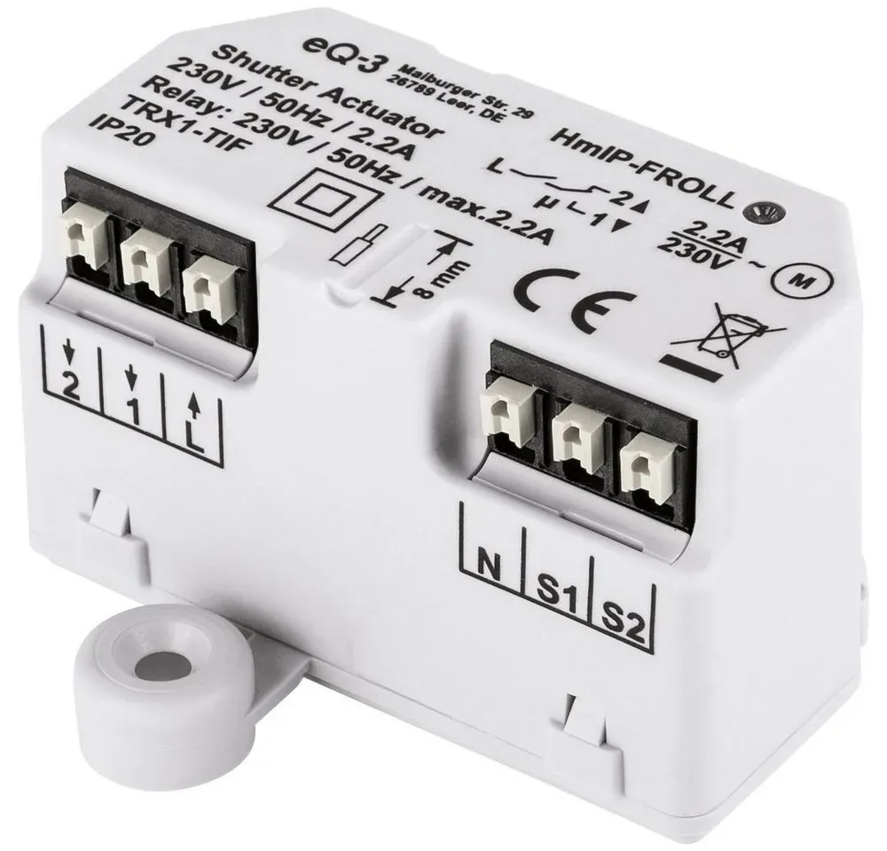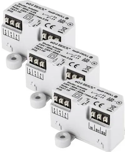 2 Händlerangebote bei billiger.de - Kategorie: Rollläden & Zubehör - eQ-3 - Der einfach installierbare Unterputz-Rollladen-Aktor ist eine äusserst vielseitige Automatisierungs- und Fernsteuerlösung für mit Rohrmotoren motorisierte Rollläden und Markisen. Der Aktor kann direkt im Rollladenkasten, in Unter- und Aufputz-Installations- und Verteilerdosen installiert und vor Ort über zwei extern anschliessbare Installationstaster bedient werden. Er ist via Access Point über die Homematic IP App, die Homematic IP Fernbedienung, die Homematic Zentrale CCU2/3 sowie über viele Partnerlösungen fernsteuerbar. Geeignet für alle gängigen Rohrmotoren bis 500 VA. Relaisausgang 1x Wechsler, 1x Schliesser. Individuelle Konfiguration eines Wochenprofils ermöglicht zeitgesteuertes Hoch- und Herunterfahren von Rollläden und Markisen. Komfortable Steuerung abhängig vom Sonnenauf- und untergang. Aussperr-, Sturm- und Wärmeschutz in Kombination mit der Homematic IP App und weiteren Komponenten realisierbar. Kompakte Bauform zum Einbau in Standard-Unterputz- oder Aufputz-Verteilerdosen. Anschluss von zwei handelsüblichen Tastern über schraublose Klemmen für eine lokale Bedienung. Für die Installation muss ein Neutralleiter vorhanden sein. über die Homematic Zentrale CCU2/3 können alle Homematic IP Komponenten ohne Homematic IP Access Point mit den über 80 Komponenten der Homematic Familie erweitert werden. Sprachsteuerung mit Amazon Alexa und Google Assistant möglich ... Ein attraktives 3er-Set von OTTO, das eine gute Ersparnis gegenüber dem Einzelkauf bietet. ![]() ![]() eQ-3 Homematic IP Smart-Home-Gurtwickler Funk Rollladenaktor Unterputz €“ 3er Set HmIP-FROLL