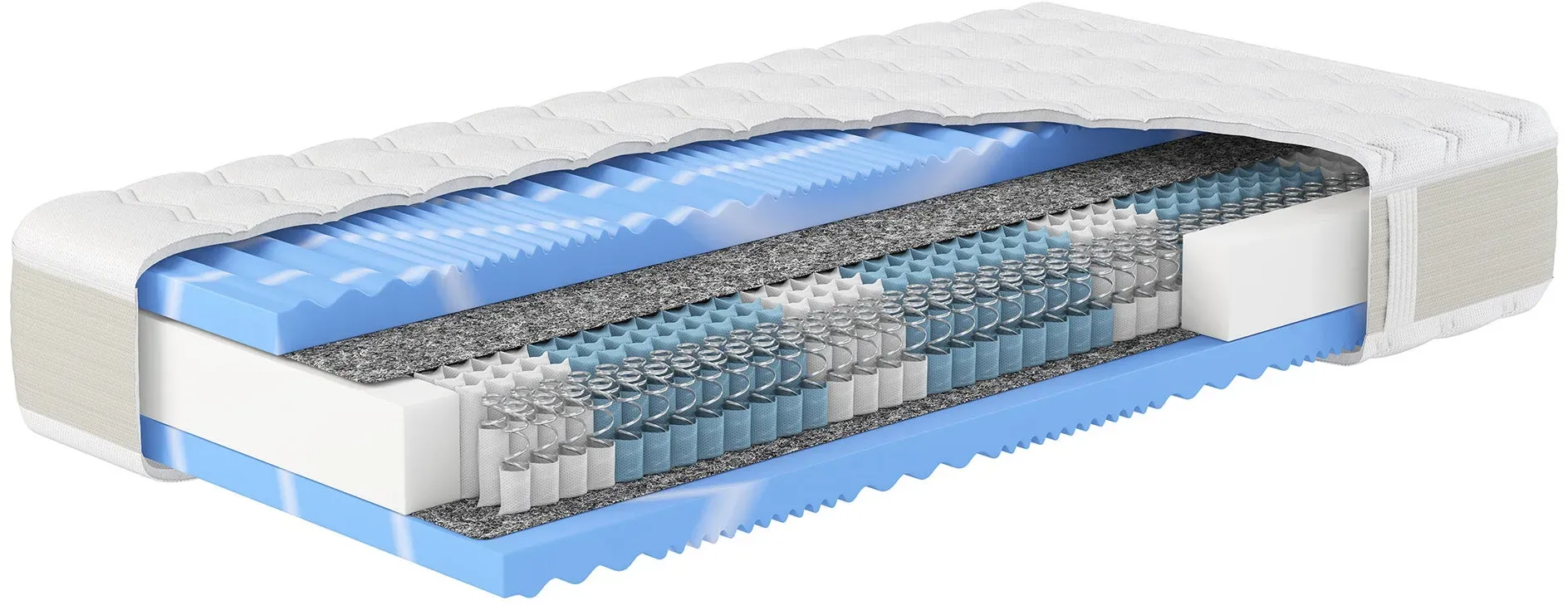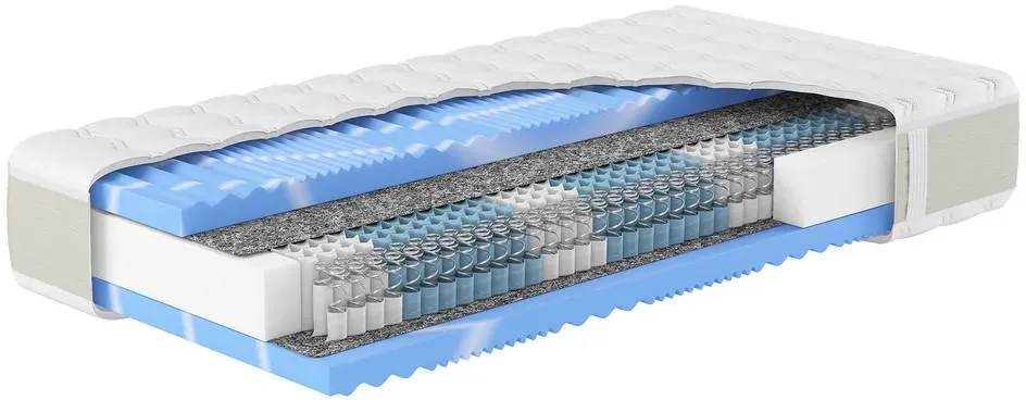 Matratzen Federkernmatratze Möbel Räume Schlafzimmer Matratzen Federkernmatratzen Taschenfederkern Schlafzimmermöbel - EAN:4046277565596 - XXL GELSTAR T-1000 - die richtige Matratze für eine erholsame Nacht. Hn8 Schlafsysteme - für den besten Schlaf. Auf einer Matratze von Hn8 Schlafsysteme kann man träumen, dösen, entspannen und sinnieren. Nirgendwo befreit sich der Mensch besser vom Stress als auf einer Matratze, die einfach passt. Daher ist eine Matratze von Hn8 Schlafsysteme nicht nur ein Möbelstück, sondern ein ganz persönlicher Wohlfühlort, um den Alltag zu vergessen und bei sich anzukommen. Die Vision der Schwarzwald Schlafsysteme GmbH ist der Motor der erfolgreichen Marke, die für beständig entwickelte Matratzen mit höchster Qualität Made in Germany steht. Erholsame Nächte mit der XXL Gelstar Serie Nach langer Entwicklungszeit wurde eine neue Matratze konzipiert, welche nach den aktuellsten Erkenntnissen alle wichtigen Faktoren für guten Schlaf optimal erfüllt. Körperunterstützung: Um den Rücken noch besser zu unterstützen, hat man einen 7-Zonen Taschenfederkern mit unterschiedlichen Drahtstärken in der Schulter- und Beckenzone eingesetzt. Der 12 cm hohe 7-Zonen 1.000-er Taschenfederkern unterstützt an den richtigen Stellen und verhindert somit ein zu starkes einsinken der Körperkonturen, was oft starke Rückenschmerzen hervorrufen kann. Druckentlastung: Die beidseitige, 5 cm hohe Gelschaumabdeckung in hohem Raumgewicht mit besonderer Zonenstrukturierung ... Diese Matratze bietet einen guten Preis für eine HN8 XXL Gelstar T-1000 in der Größe 80x200 cm mit Härtegrad 4, ideal für Einzelbetten und Personen, die eine feste Matratze bevorzugen. ![]() Taschenfederkernmatratze HN8 SCHLAFSYSTEME 'Premium-Taschenfederkern-Matratze XXL Gelstar T-1000, 25cm Komforthöhe' Gr. 4, weiß, B:80cm H:25cm L:200cm, Bezug (oben): 65% Polyester, 34% Viskose, 1% Elasthan. Bezug (unten): 65% Polyester, 34% Viskose, 1% El