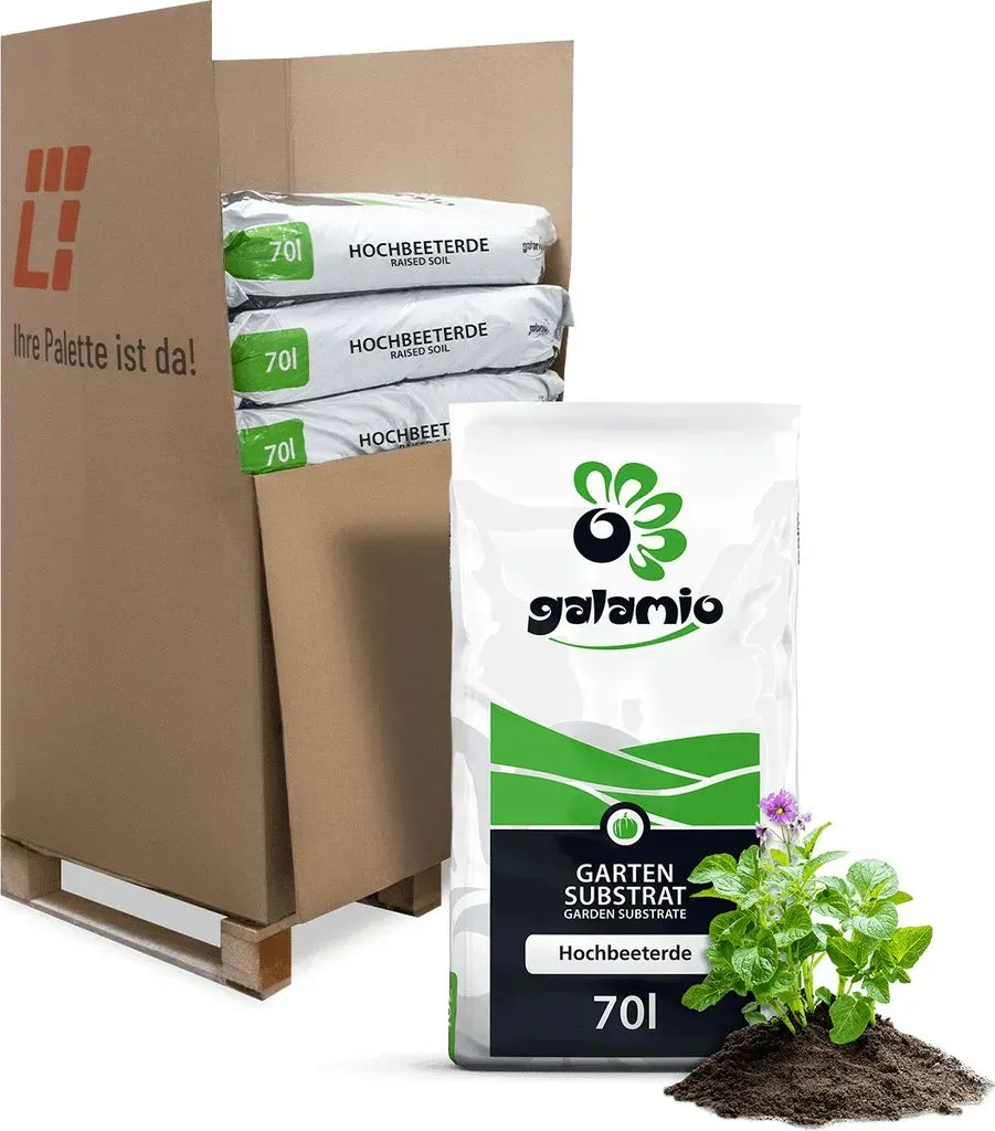 Kategorie: Blumenerde - Hochwald - GTIN:4251595740406 - HOCHWALD BIO GEMüSEERDE - Unsere Bio Tomaten- und Gemüseerde ist ein 100% torffreies, gebrauchsfertig und natürlich aufgedüngtes Kultursubstrat zur besonderen Verwendung für Obst- & Gemüsekulturen mit hohen Nährstoffanforderungen wie zum Beispiel Tomaten, Paprika, Gurken, Auberginen, Kohlrabi, Zwiebeln, Erdbeeren, Blaubeeren, Heidelbeeren, Himbeeren, Beerenbost, Bananenpflanzen, Obstpflanzen, Orangenbaum, Zitruspflanzen, Olivenbaum, Apfelbaum usw. für Haus, Balkon und Garten. 100% BIO QUALITäT & TORFFREI - Unsere Bio Erde ist ein zu 100% aus nachwachsenden Rohstoffen hergestellte Spezialerde ohne jeglichen Zusatz von Torf oder anderen chemischen Zusätzen. Die ökologisch und biotechnisch geprüfte Erdenmischung stammt aus regionalen landwirtschaftlichen Nebenprodukten, pflanzlichen Stoffen aus der Wald- u. Forstwirtschaft sowie natürlichen Stoffen des Garten- und Landschaftsbaus. HOHE NäHRSTOFFVERSORGUNG - Unsere Tomaten-, Obst- und Gemüseerde ist aufgrund der natürlichen und organischen Zusammensetzung für das biologische Gärtnern wie geschaffen. Die speziell für Gemüsekulturen ausgesuchten und hochwertigen, natürlichen Inhaltstoffe gewährleisten ein kräftiges Wachstum und eine gesunde Entwicklung sowie eine ertragreiche und aromatische Ernte. NATUR DüNGER - Die hohe Wasserhaltekraft sowie die ausgezeichnete Luftkapazität in Kombination mit dem enthaltenen Natur-Dünger sichert eine effektive sowie langanhaltende ... Galamio Hochbeeterde im 10er-Sack-Paket ist eine gute Wahl für größere Projekte und bietet ein besseres Preis-Leistungs-Verhältnis pro Liter. ![]() ![]() Galamio Hochbeeterde 70l x 10 Sack 700l Palette - 700 l