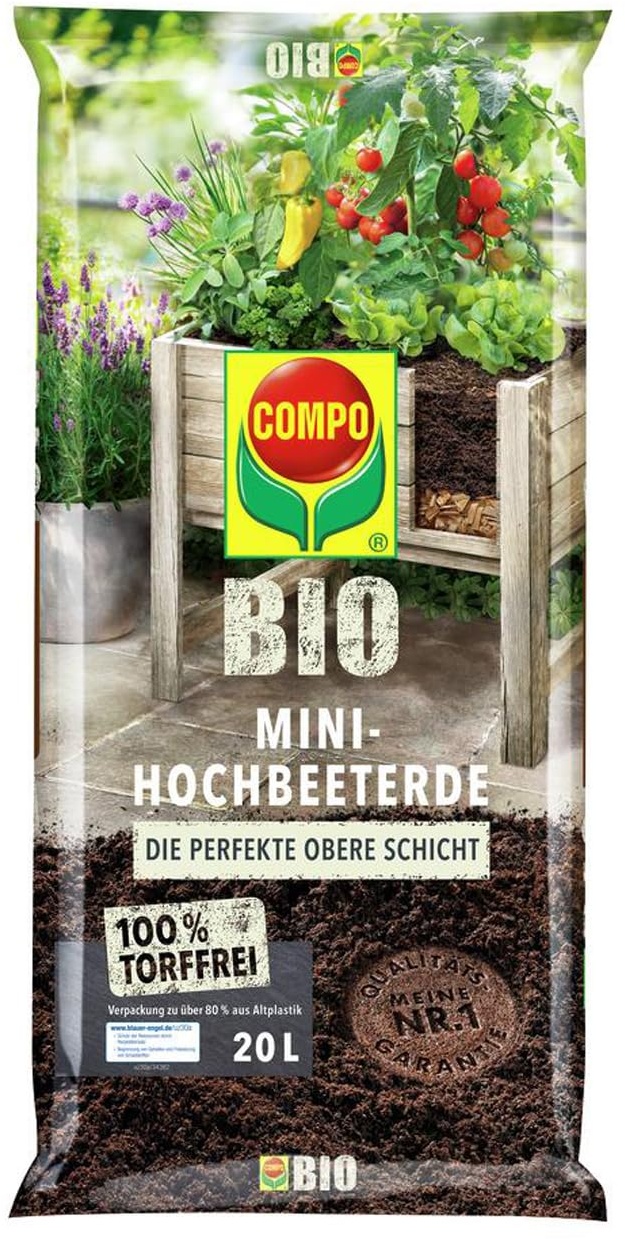 ![]() ![]() COMPO BIO Mini-Hochbeeterde, Ideal als obere Schicht im Mini-Hochbeet, Blumenerde, Torffrei, 20 L, Braun, Hochbeetkonzept