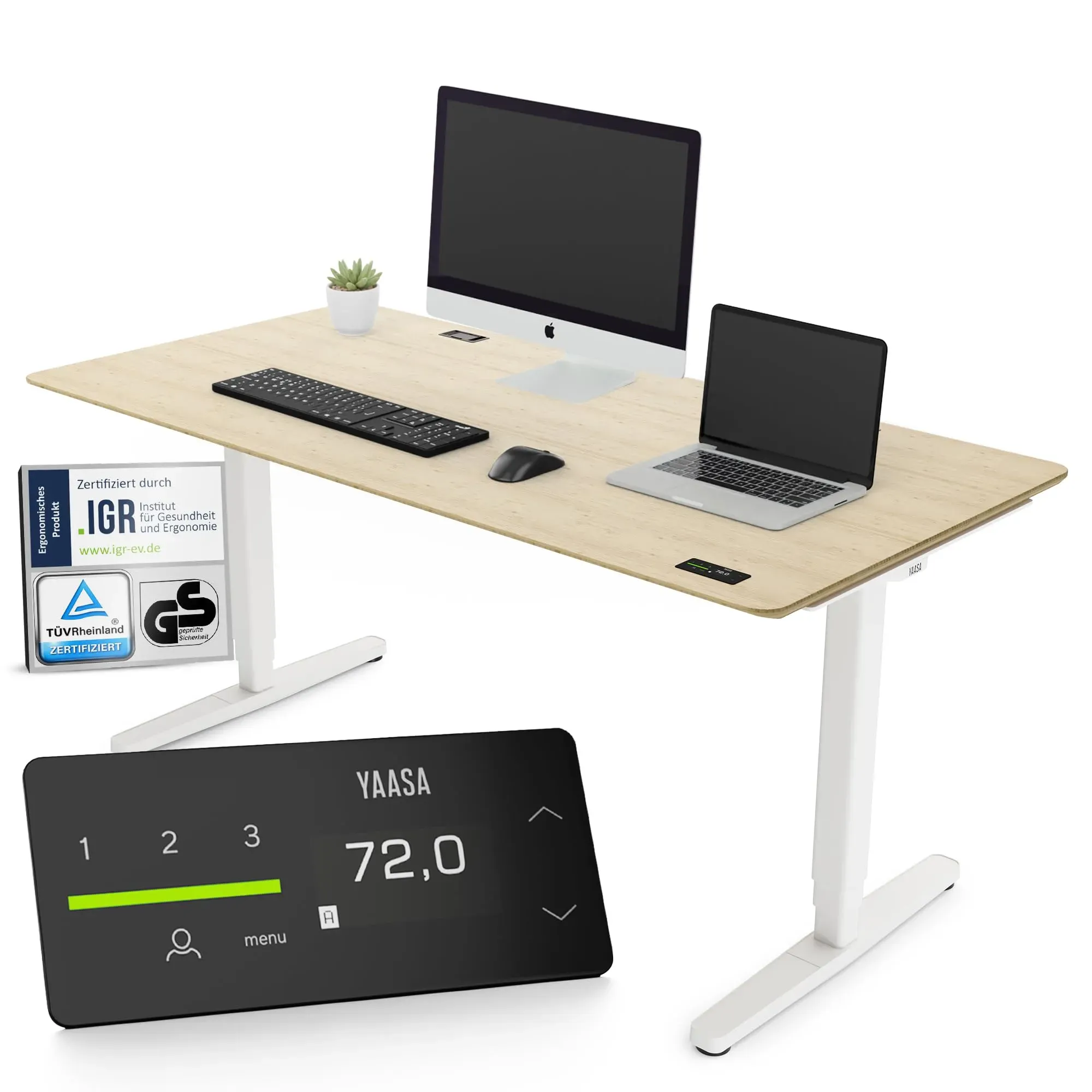 Kategorie: Schreibtische - Yaasa - GTIN:0660357378933 - FLEXIBLE ANPASSUNG Der Yaasa Desk Expert passt sich dank elektrischer Höhenverstellung idela deinen Arbeitsumfeld an perfekt für individuelle Anforderungen und vielseitige Arbeitsbereiche.SANFTE & PRäZISE HöHENVERSTELLUNG Ausgestattet mit zwei Synchronmotoren und einer Start/Stop-Funktion ermöglicht der Schreibtisch eine ruckelfreie, verzögerungsfreie Höhenverstellung für eine angenehme Nutzung.ROBUST & STABIL Die 2-stufigen Rechtecksäulen aus pulverbeschichtetem Qualitätsstahl, kombiniert mit Aluminium-Fuß und Seitenprofilen, sorgen für maximale Stabilität und wackelfreie Nutzung, selbst bei voller Traglast von 120 kg.ERGONOMISCHE FEATURES Der ErgoTouch Plus Handschalter bietet ein Tages-Stehziel, Reminder, Stehzeit-Statistik und 3 Benutzerprofile für maximal ergonomisches Arbeiten und gesunde Haltungsgewohnheiten.SICHER & DURCHDACHT Mit einem hochsensiblen Piezo-Kollisionssensor, Tastensperre und Höhenlimitierung ist das Tischgestell nicht nur sicher, sondern auch perfekt für professionelle und private Arbeitsumgebungen. Massive Konstruktion mit unvergleichbarer Belastbarkeit Das massive Stahl-Gestell mit rechteckigen Säulen, Aluminium-Füßen und hochwertigen Seitenprofilen sorgt für höchste Stabilität in jeder Position - ob im Sitzen oder Stehen. Der Desk Expert wurde mittels anspruchsvollem Pendelschlagtest auf seine Robustheit getestet und hat bewiesen, dass er in jeder Höheneinstellung wackelfrei steht. Du kannst ... ![]() ![]() Ergotopia R - Desktopia Pro eBay X Elektrisch höhenverstellbarer Schreibtisch Stehtisch