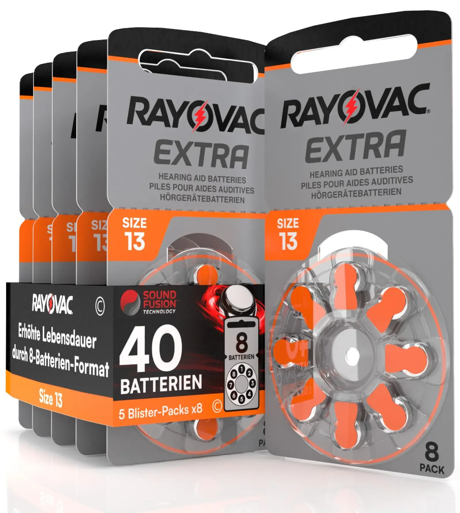 Auf Lager Versand durch Amazon40 Hörgerätebatterien Rayovac Extra 13. 5x8 Stück