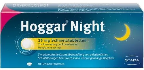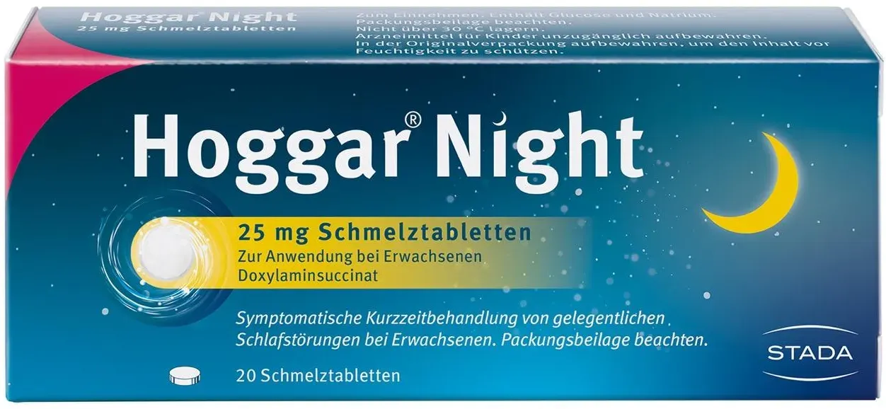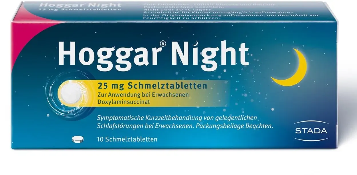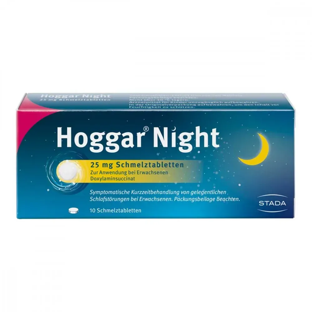 STADA Consumer Health - Hoggar Night 25 mg Doxylamin Schlaf-Schmelztabletten 10 stk - bei apolux.de - aus Yadore Produktdaten Ein sehr preiswertes Angebot für die 10er Packung, das eine gute Option für den Einstieg darstellt. ![]() ![]() STADA Hoggar Night 25 mg Doxylamin Schlaf-Schmelztabletten