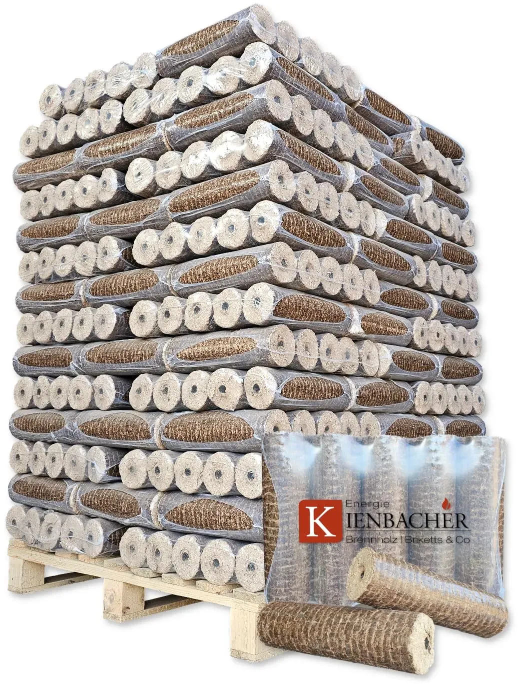 Gewöhnlich versandfertig in 2 bis 3 TagenNestro Holzbriketts mit Zugloch 960kg Palette Hartholz Brenn Kamin Ofen Heiz Holz Gluthalter Eiche & Buche 96x10kg PE-Bags Nestro Brikett Rund | Energie Kienbacher