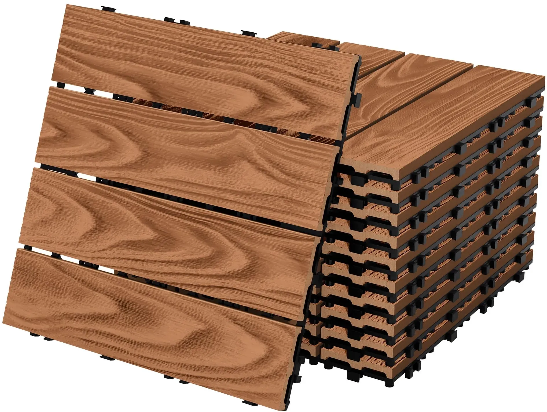 ![]() ![]() Wpc Holzfliesen 11 x Terrassenfliesen á 30 x 30 x 2.2 cm, Braun, 1m² wpc Klickfliesen, Balkonfliesen wetterfest - Swanew