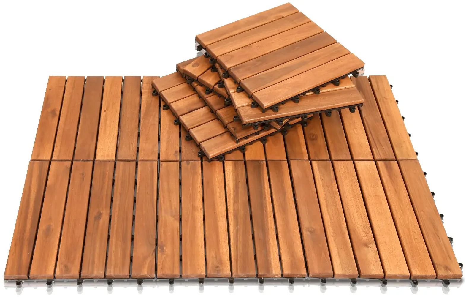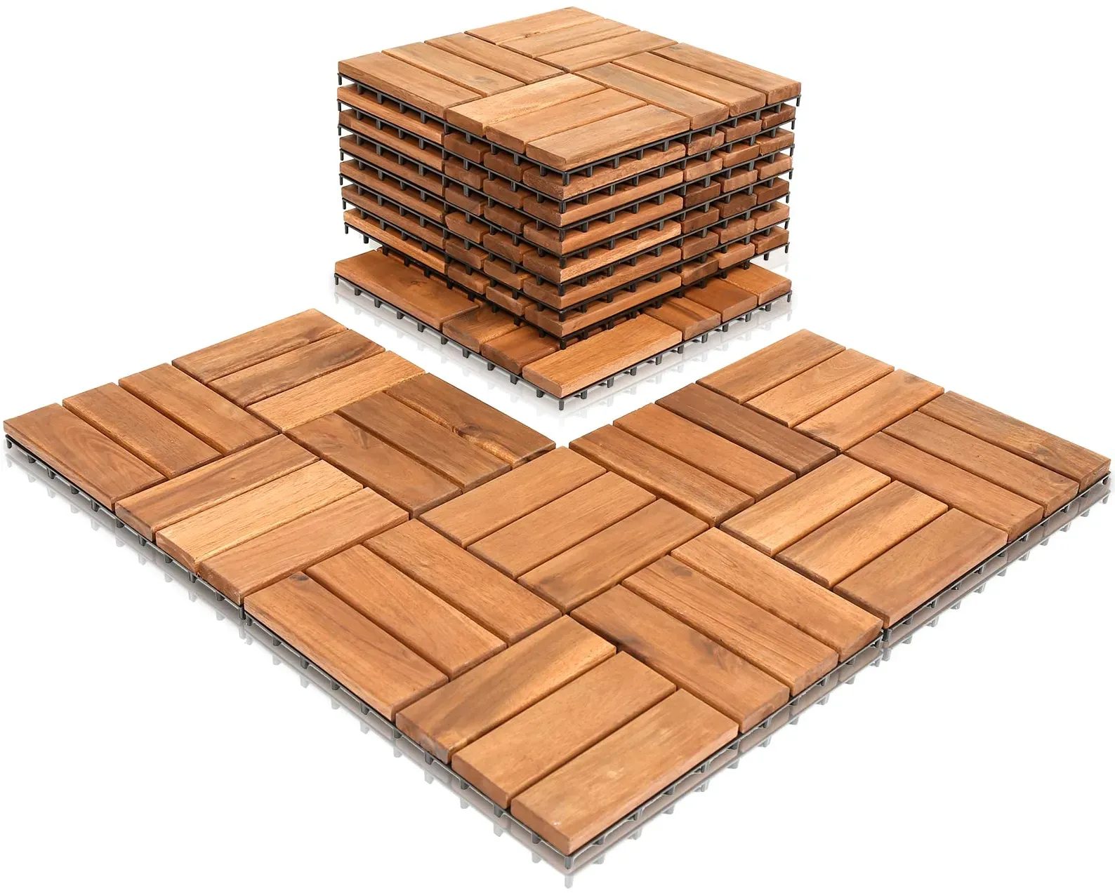 Zustand: Neu - Terrassen- & Balkonfliesen - Geakv LT - - EAN: 4014503071715 - Holzfliesen aus Akazie mit Klicksystem Die Holzfliese aus Akazie mit Klicksystem ist ein vielseitiges Produkt für Innen- und auch Außenanwendungen. Auf der Terrasse, im Wintergarten oder im Wellnessbereich. Mit nur wenigen Klicks erwartet Sie im Handumdrehen ein umweltfreundlicher, elegant wirkender Bodenbelag aus echtem Akazienholz. Grundpreis 24,99€/m² Besonderheit: ohne Schrauben - Verkäufer: nta_store im amazon.de Marketplace Dieses Angebot ist mit 28.79 Euro für 1m² Akazienholz-Fliesen ein sehr preisgünstiger Einstieg. ![]() ![]() Cecaylie 11er Pack Holzfliesen aus Akazien Holz,12 Latten Fliese Holzfliesen 30x30 cm - 1 m2 Balkonfliesen für Balkon, Garten & Terrasse | einfach, schnell & praktisch verlegt
