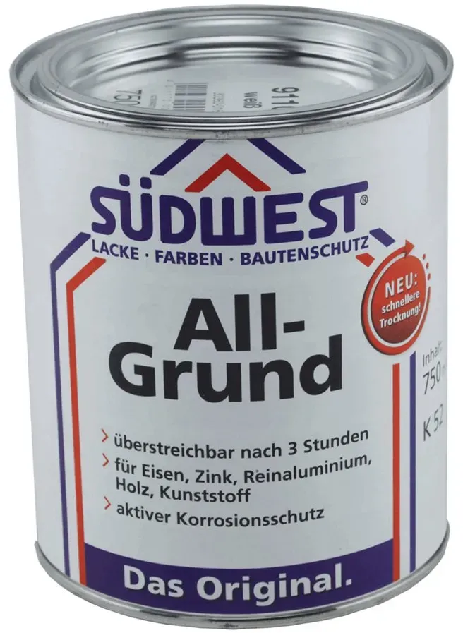 lieferbar-in 2-3 Werktagen bei dirsüdwest lacke + farben SüDWEST Lacke + Farben Holzgrundierung SüDWEST All-Grund Grundierung 0,75 Liter Silbergrau grau|silberfarben