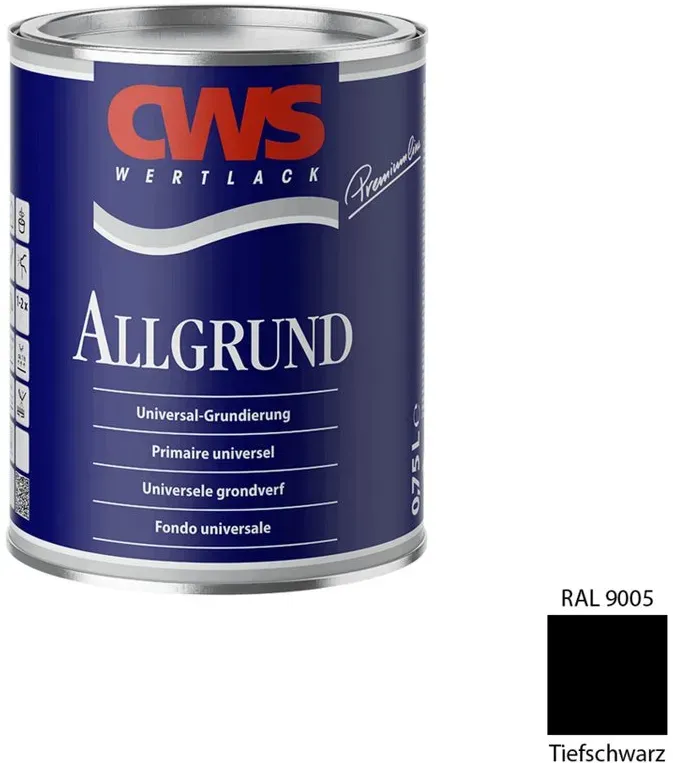 lieferbar-in 2-3 Werktagen bei dirPictolor Holzgrundierung CWS WERTLACK Allgrund 0,75 Liter RAL 9005 tiefschwarz schwarz