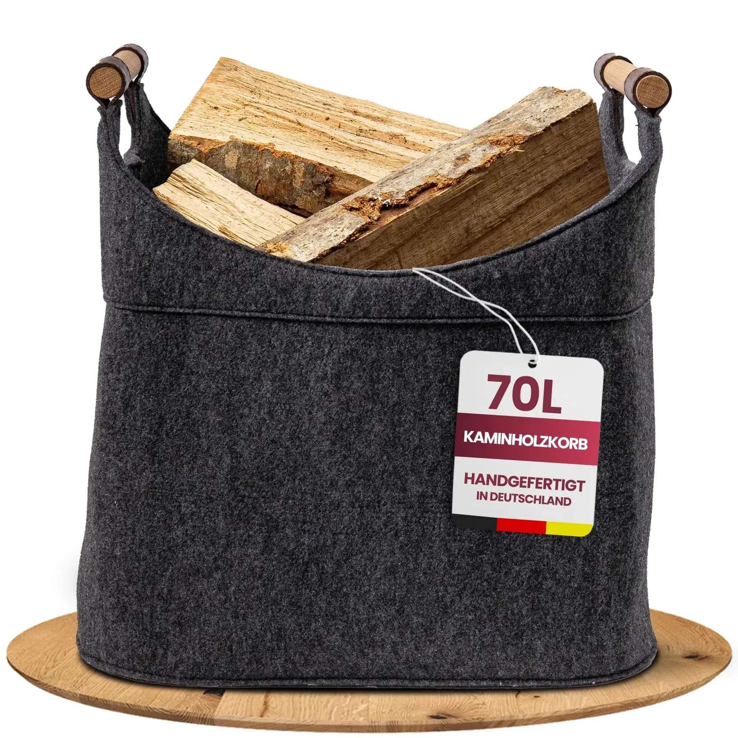 Verfügbarkeit: Auf Lager - Kategorie: Kaminzubehör - Black Oak - GTIN:4260724272084 - 🔥 PRAKTISCH & DEKORATIV - In diesem anthrazit Kaminholzkorb transportieren und lagern Sie bequem und sicher Ihr Kamin- und Brennholz. Durch die attraktive Optik ist der Holzkorb aus Filz ideal zur dekorativen Aufbewahrung und Lagerung von Holz am Kamin und Ofen. Durch den dicken Filzstoff steht der Feuerholzkorb sehr sicher und fällt nicht zusammen 🔥 ANGENEHME XL GRöSSE - Dank 60 Liter Volumen mit Maßen von LxBxH 45x32x41cm finden auch 33 oder 25 cm Feuerholz Scheite bequem Platz in dieser Brennholztasche. Dieser hochwertig verarbeitete Brennholzkorb aus 5 mm dickem, stabilem Filz mit 700g Materialstärke bietet dank 45kg Traglast viel Stabilität und ist bei Bedarf platzsparend faltbar 🔥 PRAKTISCHE AUSSTATTUNG - Die extragroße 10x15cm Tasche an der Front bietet viel Platz für Kaminzubehör wie Anzünder, Zündhölzer und Feuerzeug. Das Tragen des Filzkorbs wird durch die 20 cm breiten Holzgriffe sehr erleichtert. Die Holzgriffe sind mit den Lederriemen verleimt. Diese können somit nicht verrutschen oder herausfallen und ren ein besonders angenehmes und sicheres Tragen 🔥 VIELSEITIGER EINSATZ & MODERNE OPTIK - Ideal als Einkaufstasche oder auch als Behälter zum Aufbewahren und Transportieren von Kleidung, Büchern, Spielsachen, Altpapier oder Flaschen Leergut sehr hilfreich. Auch bei Camping- oder Picknickausflügen ist dies Filztasche ein beliebter und ... Ein großer Kaminholzkorb im XXL-Format, der sich auch gut zur allgemeinen Aufbewahrung eignet und mit Holzgriffen ausgestattet ist. ![]() EVOCAMP großer Holzkorb für Kaminholz und Aufbewahrung, XXL Kaminholzkorb in Dunkelgrau mit Holzgriffen, Zeitungskorb (44x44x30 cm)