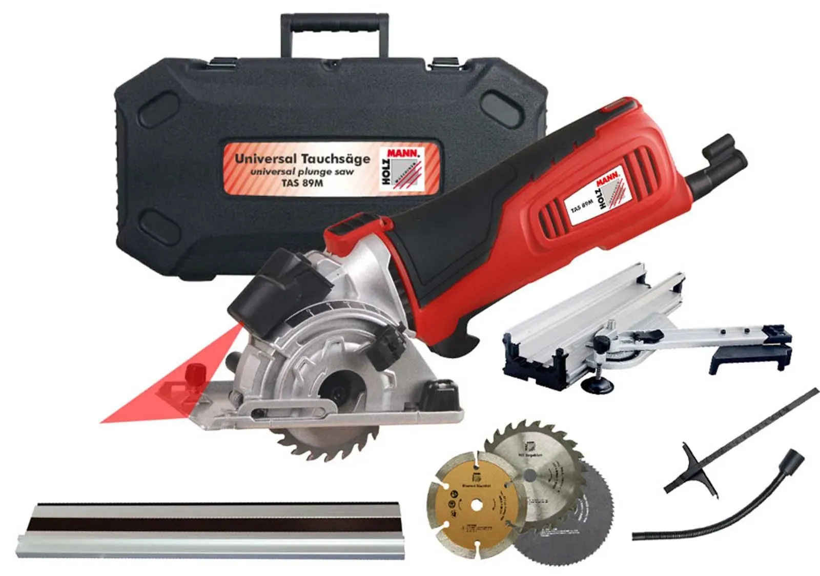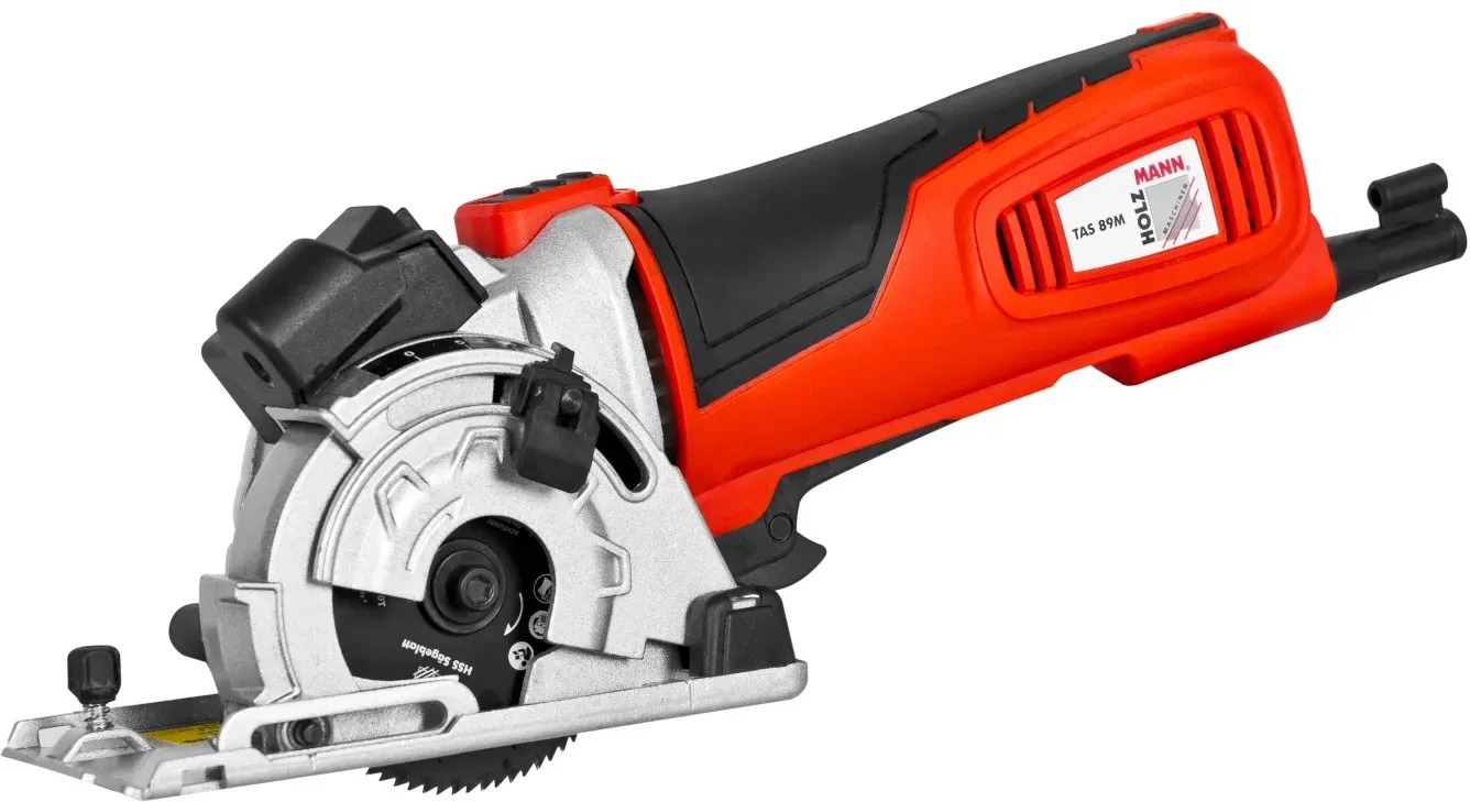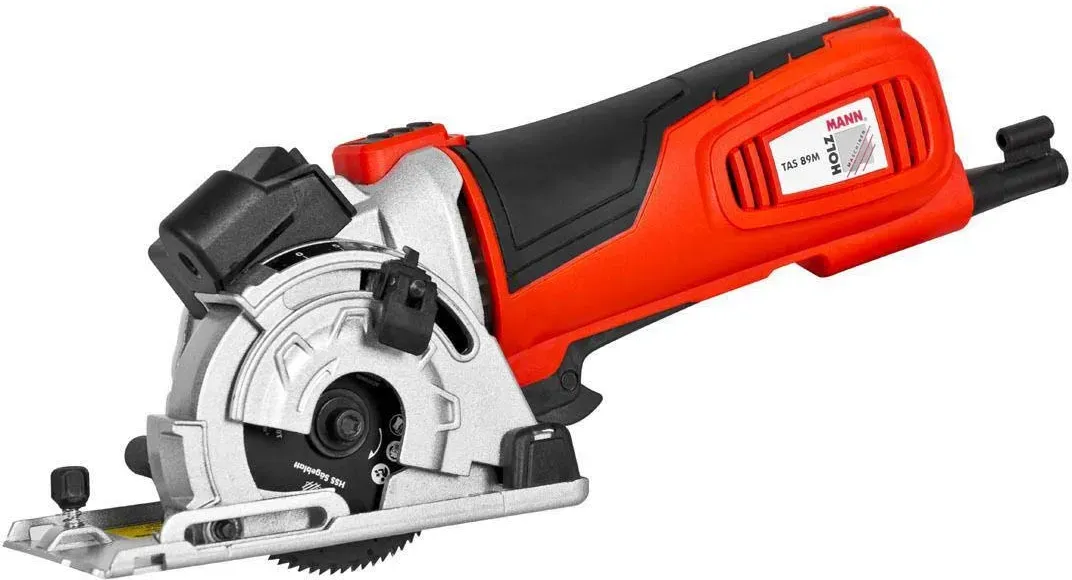 Auf Lager, Lieferzeit 1-2 WerktageHolzmann Maschinen TAS89M_230V Mini-Handkreissäge Schnitttiefe max. (90 ) 28.5mm mit Zubehör, inkl. Koffer 600W