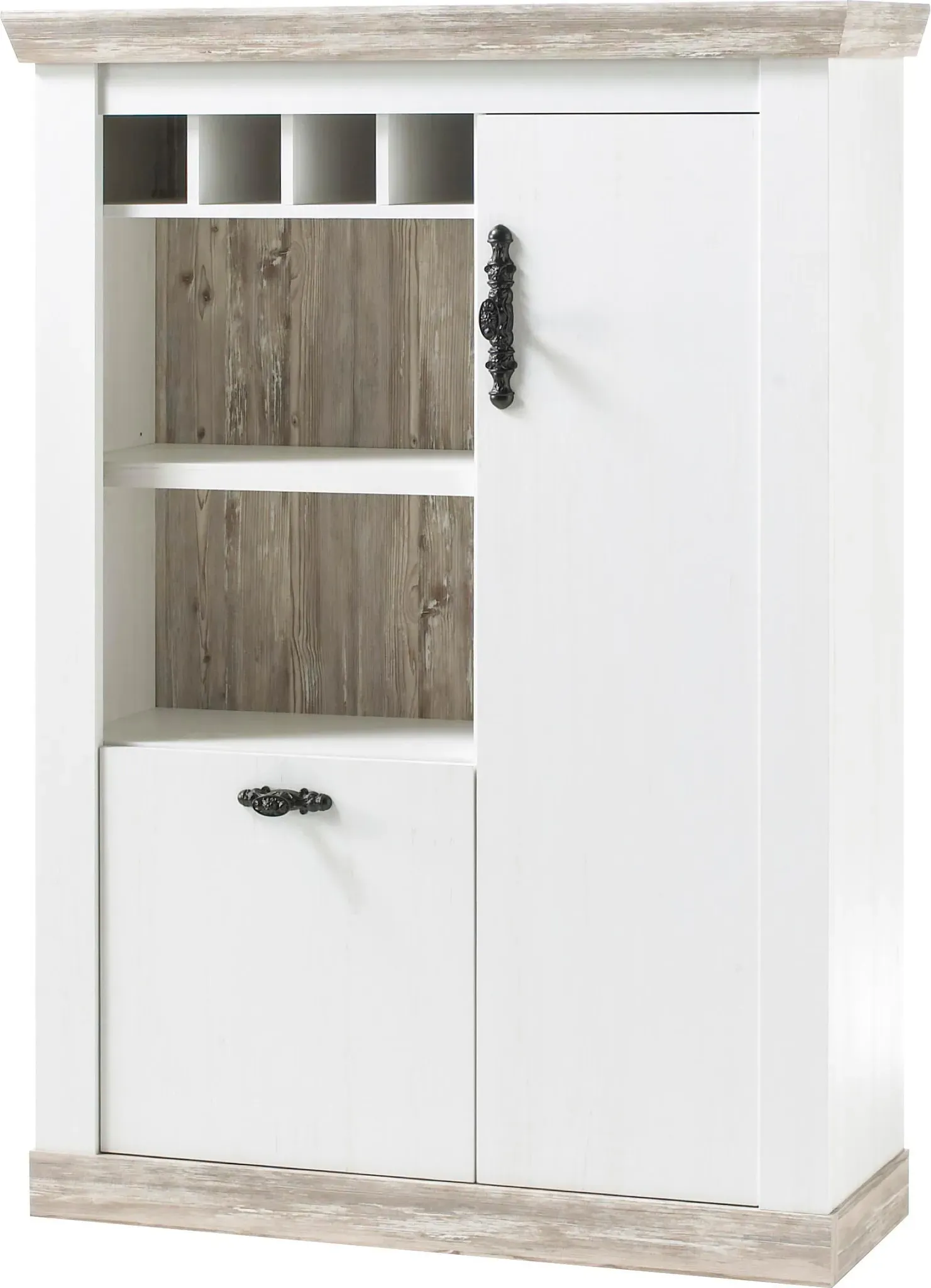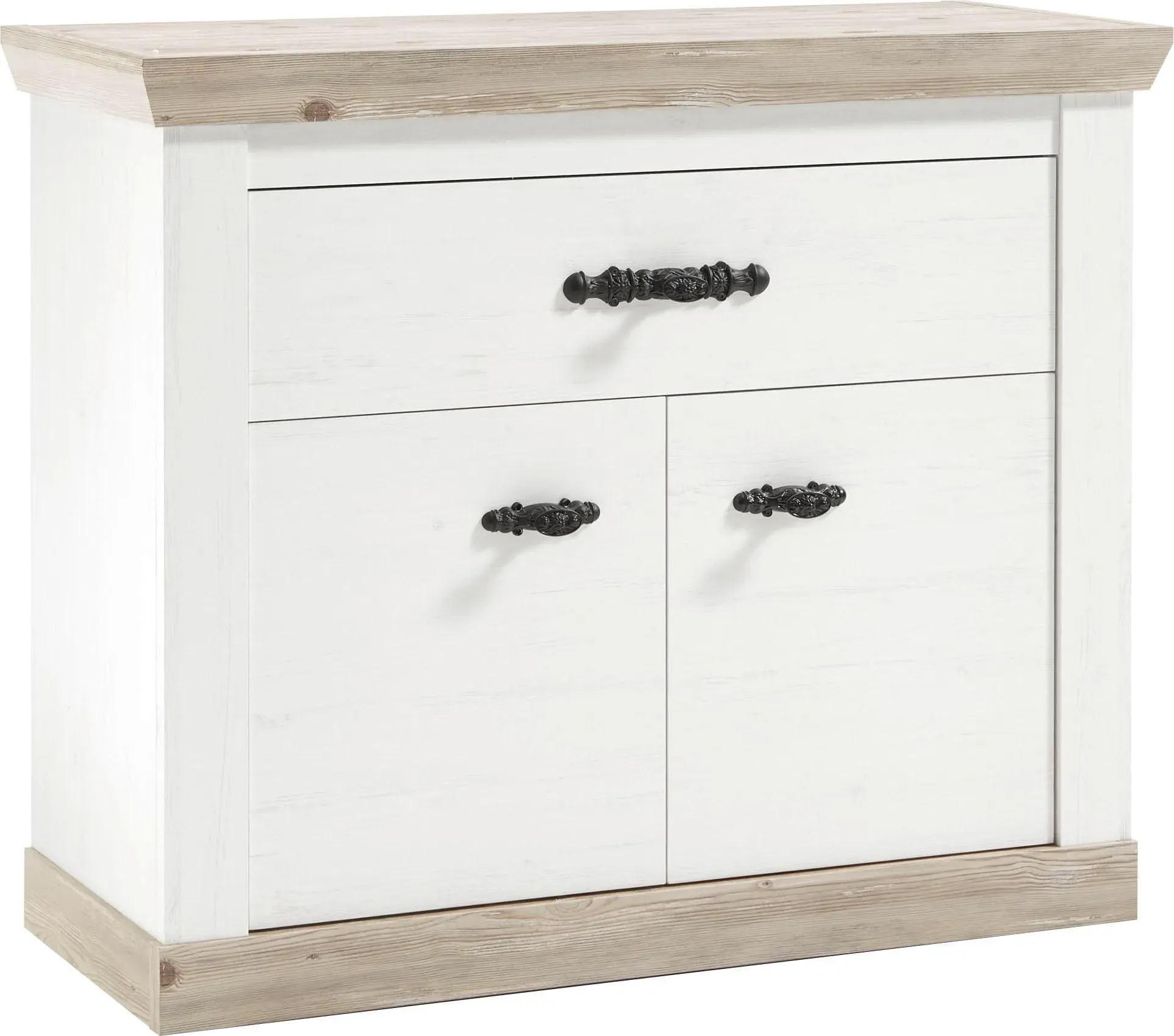 Sideboards Anrichten Wohnen Aufbewahren Ordnen Schränke, Kommoden Vitrinen - - Produktdetails: Markeninformationen: Seit 2001 begeistert uns Home affaire mit Landhausmöbeln zum Verlieben. Ob modern, romantisch oder natürlich traditionell - der Fantasie für wunderschönes Einrichten sind kaum Grenzen gesetzt., Ausstattung Funktionen: Anzahl Einlegeböden: 4 Stk., Anzahl geschlossene Fächer: 2 Stk., Anzahl offene Fächer: 4 Stk., Anzahl Schubladen: 2 Stk., Anzahl Türen: 2 Stk., Maßangaben: Breite: 168 cm, Tiefe: 44 cm, Höhe: 104 cm, Breite Fachinnenmaß: 48,1 cm, Tiefe Fachinnenmaß: 44 cm, Höhe Fachinnenmaß: 82,8 cm, Breite Fachinnenmaß 2: 47,6 cm, Tiefe Fachinnenmaß 2: 44 cm, Höhe Fachinnenmaß 2: 34,4 cm, Hinweis Maßangaben: Alle Angaben sind ca.-Maße., Material: Material: FSC®-zertifizierter Holzwerkstoff, Material Griffe: Metall, Material Korpus: FSC®-zertifizierter Holzwerkstoff, Material Türen: Holz, Materialhinweis: Das Label des FSC® weist nach, dass Sie mit dem Kauf dieser Produkte vorbildliche Waldwirtschaft - nach den strengen sozialen und wirtschaftlichen Standards des Forest Stewardship Council® - fördern und die Waldressourcen schonen., Farbe: Farbe Griffe: schwarz, Farbbezeichnung: Pinie weiß, Lieferung Montage: Aufbauhinweise: einfache Selbstmontage mit Aufbauanleitung, Lieferzustand: zerlegt, Hinweise: Pflegehinweise: Bitte beachten Sie die Pflegehinweise gemäß dem beiliegenden Produkt- und Materialpass., Wissenswertes: Herstellungsland: Made in Europe, Serie: ... ![]() ![]() Home affaire Sideboard Florenz, im romantischen Landhaus-Look, Breite 168 cm weiß