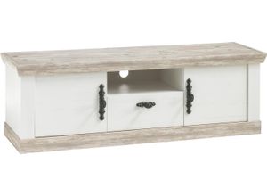 CD- DVD-Aufbewahrung Lifestyle Technik Speichermedien Medienarchivierung - - Produktdetails: Markeninformationen: Seit 2001 begeistert uns Home affaire mit Landhausmöbeln zum Verlieben. Ob modern, romantisch oder natürlich traditionell - der Fantasie für wunderschönes Einrichten sind kaum Grenzen gesetzt., Ausstattung Funktionen: Anzahl offene Fächer: 2 Stk., Anzahl Schubladen: 2 Stk., Maßangaben: Breite: 134 cm, Tiefe: 44 cm, Höhe: 51 cm, Breite Fachinnenmaß: 55,3 cm, Tiefe Fachinnenmaß: 33,8 cm, Höhe Fachinnenmaß: 14,7 cm, Breite Schubladeninnenmaß: 50,3 cm, Tiefe Schubladeninnenmaß: 35 cm, Höhe Schubladeninnenmaß: 14 cm, Hinweis Maßangaben: Alle Angaben sind ca.-Maße., Material: Material Korpus: FSC®-zertifizierter Holzwerkstoff, Materialhinweis: Das Label des FSC® weist nach, dass Sie mit dem Kauf dieser Produkte vorbildliche Waldwirtschaft - nach den strengen sozialen und wirtschaftlichen Standards des Forest Stewardship Council® - fördern und die Waldressourcen schonen., Farbe: Farbe Griffe: schwarz, Farbe Korpus: Pinie weiß, Farbbezeichnung: Pinie weiß, Lieferung Montage: Aufbauhinweise: einfache Selbstmontage mit Aufbauanleitung, Lieferzustand: zerlegt, Hinweise: Pflegehinweise: Bitte beachten Sie die Pflegehinweise gemäß dem beiliegenden Produkt- und Materialpass., Wissenswertes: Herstellungsland: Made in Europe, Serie: Serie: Florenz - Versandkostenfrei: false - Sale: true - Lieferzeit: 2 Wochen - Hersteller-Farbe: pinie weiß - Farbe: Weiß - - Versand mit Hermes ... ![]() Lowboard HOME AFFAIRE 'FlorenzTV-Board, TV-Schrank', weiß (pinie weiß), B:156cm H:51cm T:44cm, Sideboards, Lowboard, im romantischen Landhaus-Look, Fernsehtisch Breite 156 cm