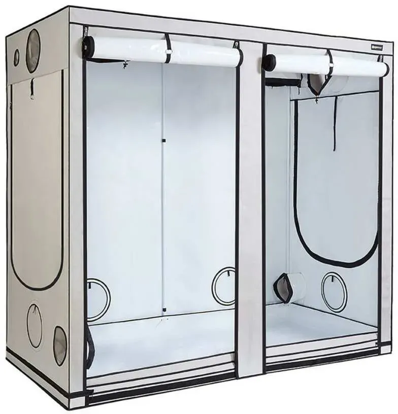 Verfügbarkeit: 2-3 Tage - Kategorie: Growboxen - HOMEbox - GTIN:4260220921745 - HOMEbox Ambient R240 Die HOMEbox Ambient R240 bietet einen Growraum, der für den Anbau vielerlei Pflanzen entwickelt wurde. Das Growzelt verfügt über eine geräumige Innenfläche die vielfältig verwendet werden kann, vom Sämling oder Steckling bis hin zu ausgewachsenen Pflanzen. Aufgrund der Größe von 240x120x200cm kann dieses Growzelt am besten durch LED-Lampen für große Growzelte beleuchtet werden. Die PAR+ Technologie der Innenbeschichtung ermöglicht es dir eine übermäßige Hitzeentwicklung zu verhindern bei gleichzeitig sehr hohen Reflektionswerten für bessere Erträge . Um dir deine Entscheidung weiter zu erleichtern, haben wir für dich nochmal kurz und knapp alle relevanten Produktinformationen und den Lieferumfang aufgelistet. Wir freuen uns, deine Bestellung schnellstmöglich zu bearbeiten und sie dir zu liefern. So kannst du endlich loslegen! Bei Fragen zögere nicht, uns zu kontaktieren. Wir helfen dir gern weiter . Produktinformationen Designed in Germany Größe montiert: 240 × 120 × 200 cm Anbaufläche: 2,88 m2 Empfohlene Beleuchtung: 2x 600 Watt Robuste, lichtundurchlässige und schmutzabweisende Materialien Strapazierfähiges Außenmaterial aus Polyester Wasserundurchlässiger und herausnehmbarer Innenboden verhindert Havarien öffnung A: 100 mm (2x Rück-, 1x linke & 1x rechte Seite) öffnung B: 200 mm (linke- & rechte Seite) öffnung C: 250 mm (linke & ... ![]() ![]() HOMEbox | Ambient R240+ | Growbox | 240x120x220cm