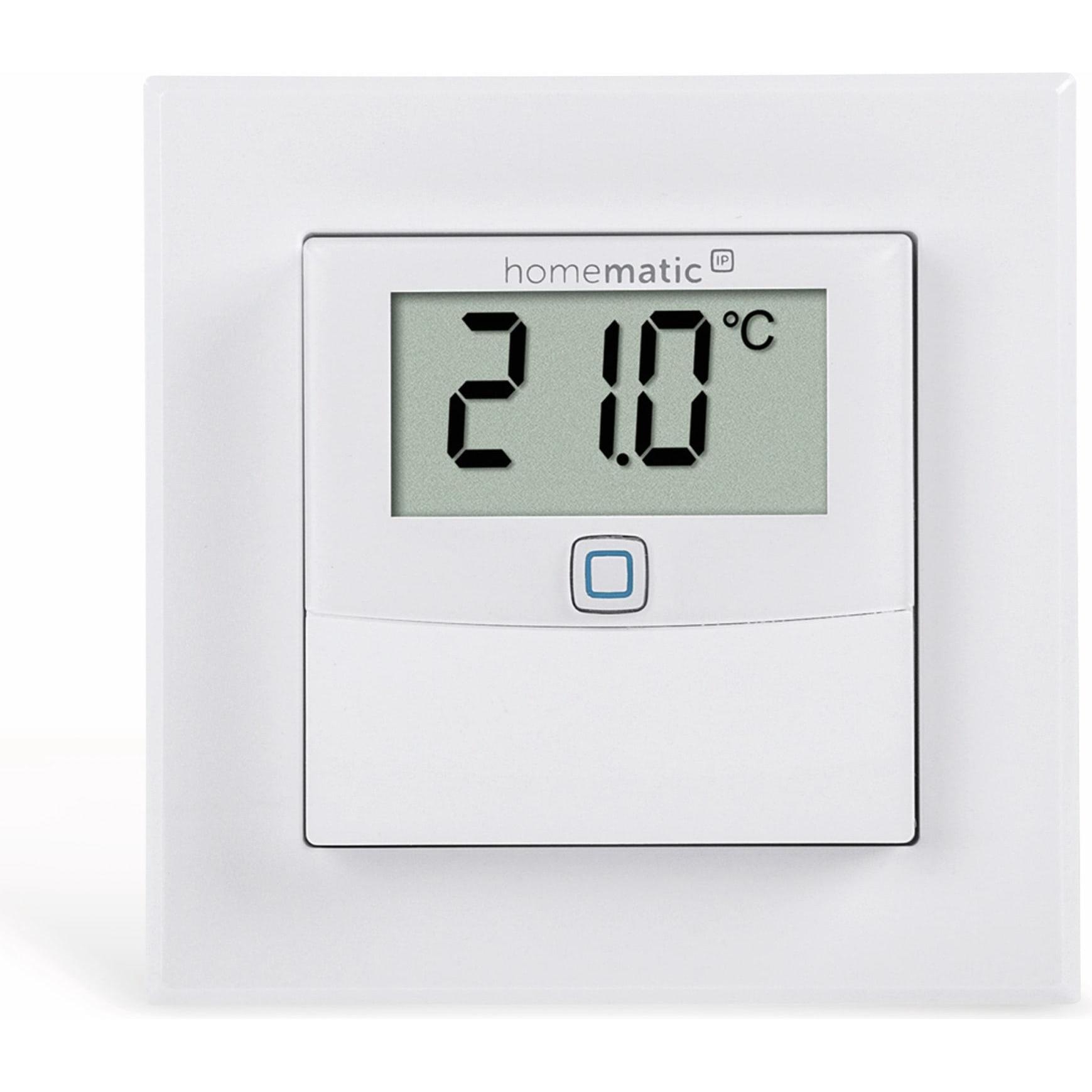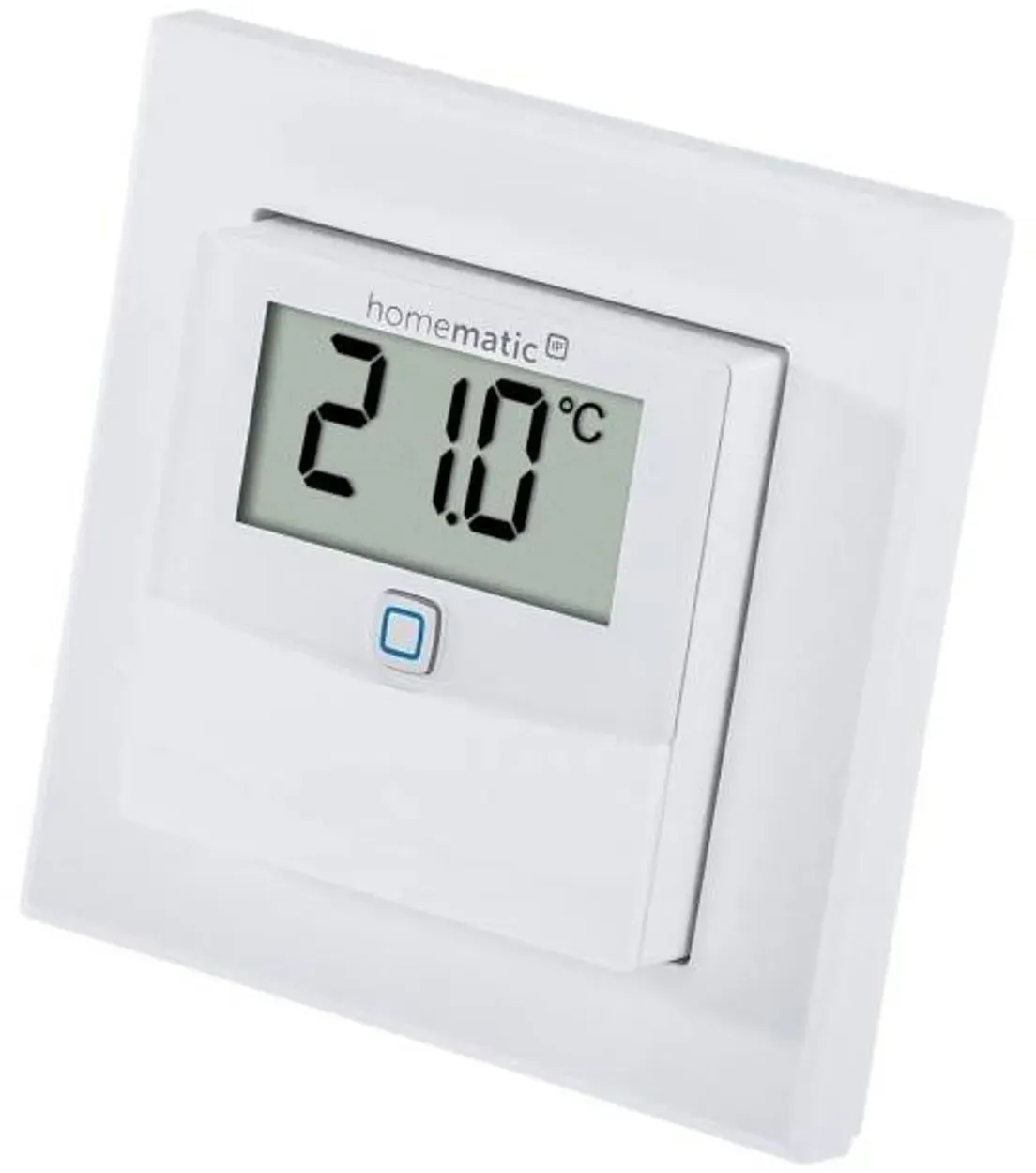 Auf Lager Versand durch AmazonHomematic IP Smart Home Temperatur- und Luftfeuchtigkeitssensor mit Display ? innen, steuert Heizkörper/Fußbodenheizung per App, Alexa, Google Assistant, Temperaturmessung, Energie sparen, 150180A0