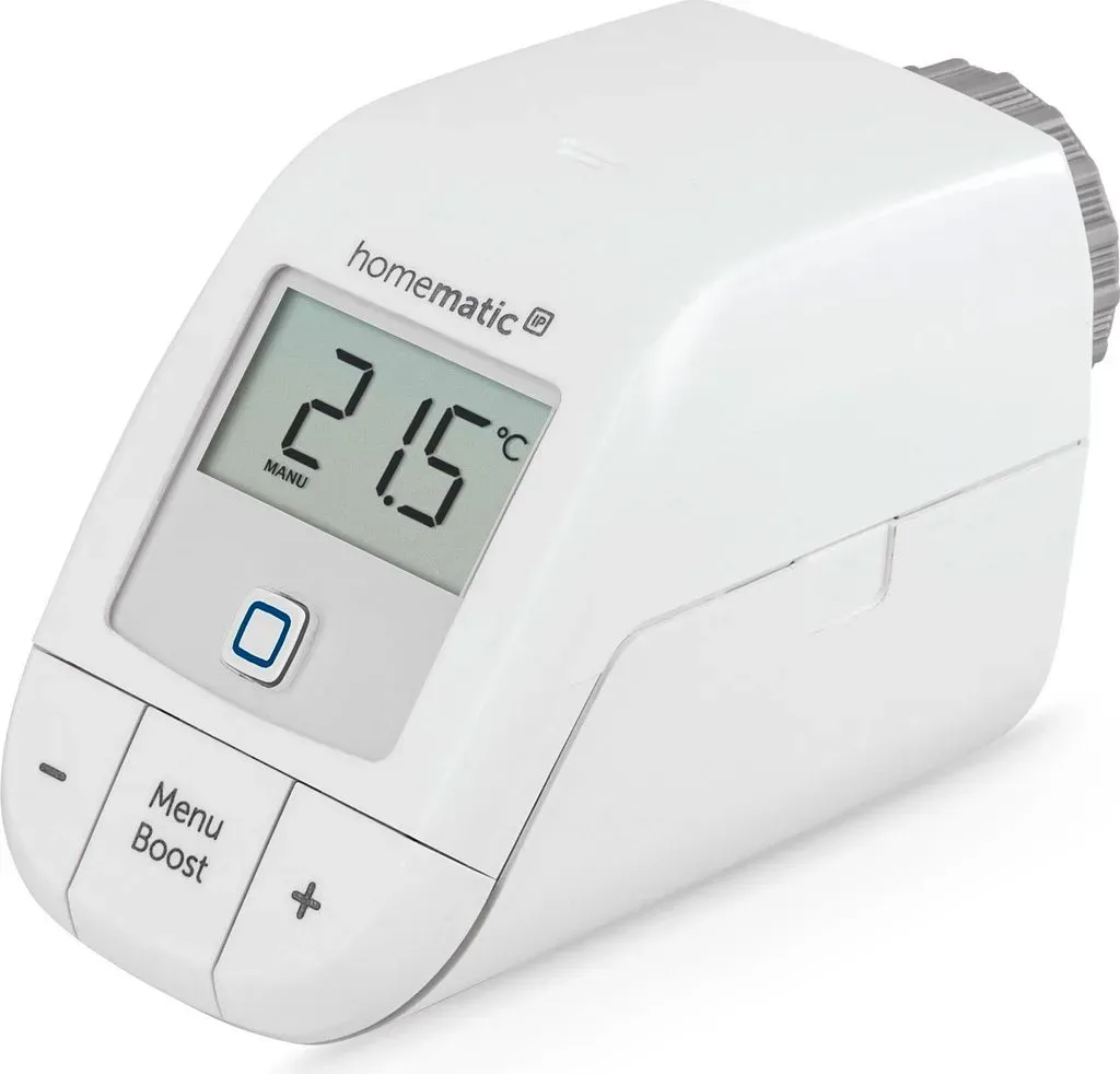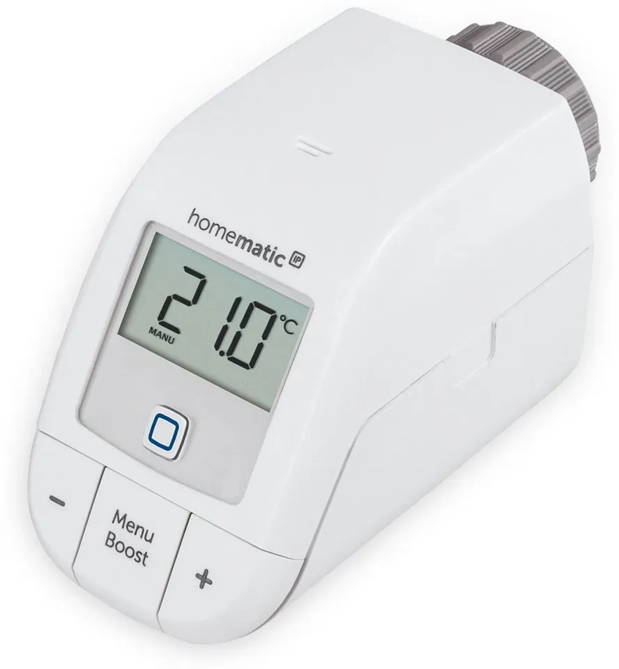 EAN: 4047976534166 - Einfach smart Heizen Steuern Sie Ihre Heizkörper smart ganz nach Ihren Wünschen. Mit dem Heizkörperthermostat basic gelingt Ihnen der Start ins Smart Home im Handumdrehen. Mit drei einstellbaren Heizprofilen und 13 möglichen änderungen pro Tag können Sie richtig heizen und sparen Heizkosten. Und wenn Sie wollen, erweitern Sie den Heizköperthermostat einfach zu einem kompletten Smart Home. Montage Der Heizkörperthermostat wird einfach und ohne Eingriff in das Heizungssystem am Radiator montiert. Zwei AA-Batterien liefern Energie für bis zu . Im Lieferumfang enthalten ist eine hochwertige Metallüberwurfmutter zur sicheren Montage auf allen gängigen Heizkörperventilen mit M30-Gewinde. Einstellung Richtig heizen: Durch ein voreingestelltes Heizprofil ist das Gerät sofort einsatzbereit, ganz ohne weitere Konfiguration. Wenn Sie mehr wollen, legen Sie mit der en Homematic IP App individuelle Temperaturverläufe fest mit bis zu 13 änderungen pro Tag in 3 einstellbaren Heizprofilen. So kommen Sie beispielsweise morgens in ein vorgewärmtes Badezimmer, sparen bei Abwesenheit wertvolle Heizenergie und genießen den Feierabend im Wohnzimmer bei gewünschter Raumtemperatur Steuerung Mit dem Homematic IP Access Point und der en Smartphone App legen Sie die Basis für Ihr Smart Home: Ihr Heizkörperthermostat basic wird darin integriert und Sie können viele weitere Geräte smart ergänzen. Smartes Highlight Wirklich smart reagiert der Homematic IP Heizkörperthermostat ... ![]() ![]() HomeMatic IP - | Heizkörperthermostat eBay | Smart Home | HMIP-eTRV-2 | Thermostat