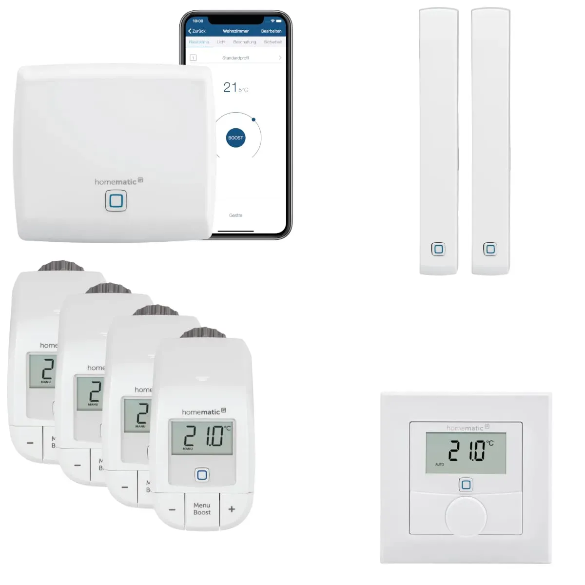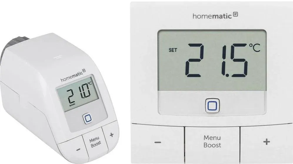 Verfügbarkeit: Auf Lager - Kategorie: Zubehör für Klima & Heizen - eQ-3 - GTIN:4023392546983 - Homematic IP Glas-Wandthermostat mit 1-Fach Glasrahmen und CO2-Sensor, weiß, Smart Home, misst Temperatur, Luftfeuchte, CO2, für Heizkörper/Fußbodenheizung mit App, Alexa, Google Assistant - 209,90 Euro bei Amazon Marketplace Home - gefunden von billiger.de Dieses Komplettpaket bietet eine umfassende Heizungssteuerung für mehrere Heizkörper inklusive Wandthermostat und App-Steuerung. ![]() ![]() Moose Homematic IP Funk Smart Home Heizungssteuerung Komplettpaket für 4 Heizkörper mit kostenloser Smartphone App. Inhalt: Zentrale, 4 Heizkörperthermostate, 2 Tür-Fensterkontakte, 1 Wandthermostat.