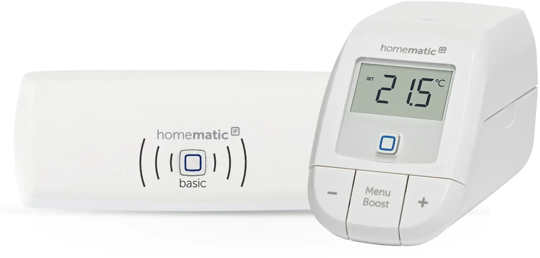 Zustand: Neu - Programmierbar Programmierbare Thermostate für Zuhause - Homematic IP eQ-3 AG - HmIP-eTRV-B 153412A3 - EAN: 4047976534166 - Die Einrichtung und Steuerung des Thermostats über die kostenlose Smartphone-App und dem gebührenfreien Cloud-Service erfordert die Anbindung an den Homematic IP Access Point; Dieses Produkt ist nicht mehr kompatibel mit der Zentrale CCU2 Mit dem Heizkörperthermostat - basic können Sie bis zu 33 % Heizkosten sparen - durch individuelle Temperaturverläufe mit bis zu 13 Änderungen pro Tag in drei einstellbaren Heizprofilen und in Kombination mit der Fenster-auf-Erkennung mit einem Fenster- und Türkontakt Ersetzt mit wenigen Handgriffen herkömmliche Heizkörperthermostate - ein Eingriff in die Heizungsanlage oder das Ablassen von Wasser ist nicht nötig Sofort einsatzfähig dank voreingestelltem Heizprofil, welches sich bei Bedarf manuell anpassen lässt (individuelle Temperaturverläufe mit bis zu 13 Änderungen pro Tag). Stand-alone Betrieb (Push-to-Pair) ermöglicht das direkte Anlernen von bis zu acht Homematic IP Fenster- und Türkontakten (HmIP-SWDM) und die direkte Bedienung am Gerät. - bei Amazon.de Der Homematic IP Access Point ist eine preiswerte und essentielle Basisstation für die Steuerung Ihres Smart Homes. ![]() ![]() eQ-3 Homematic IP Smart Home Access Point basic, HmIP-WLAN-HAP-B