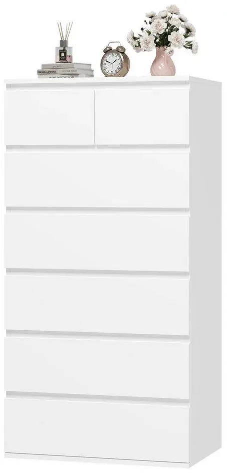 lieferbar-in 7-9 Werktagen bei dirauracraft Homfa Kommode Sideboard, Schubladenschrank mit 7 Schubladen, holz, weiß, 60x40x119 cm weiß