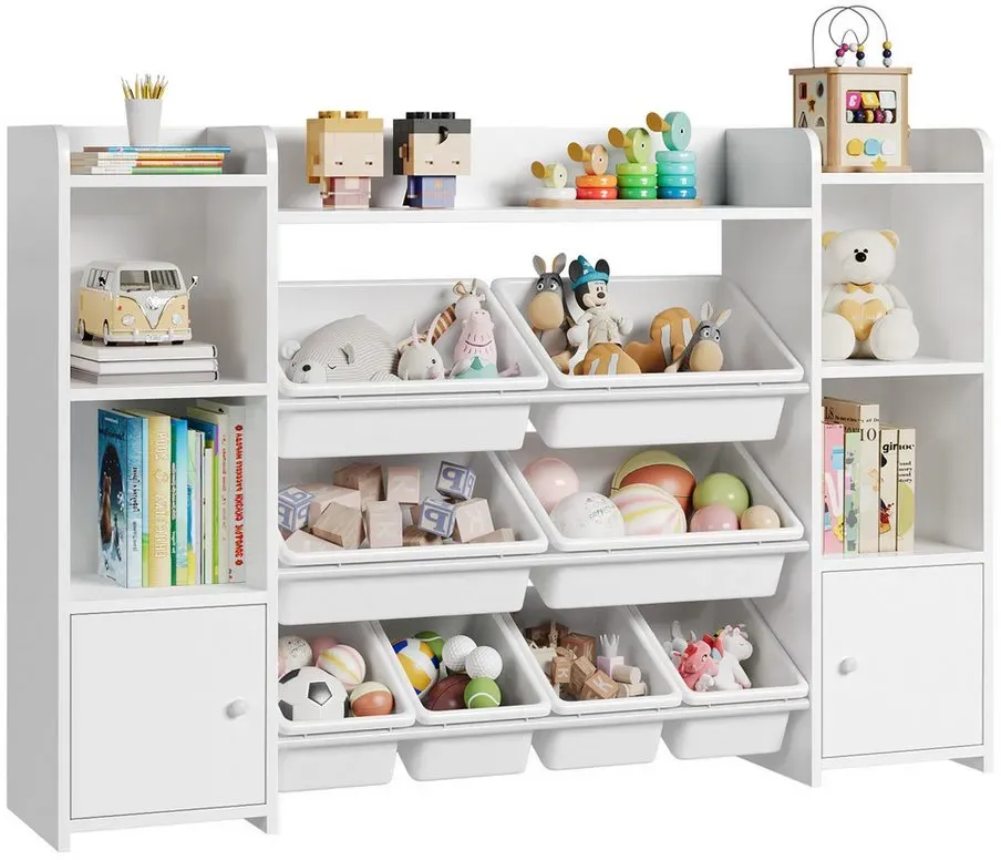lieferbar-in 6-8 Werktagen bei dirHomfa Spielzeugtruhe, Kinderregal Bücherregal Spiegelregal mit 8 Boxen weiß 138x29x94 cm weiß