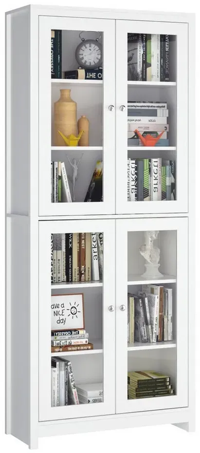 lieferbar-in 7-9 Werktagen bei dirHomfa Vitrine Vitrinenschrank, Bücherschrank, 190 cm Hochschrank mit 4 Glastüren, 6 Fächern, 80x33x190cm, Weiß, aus Holz weiß