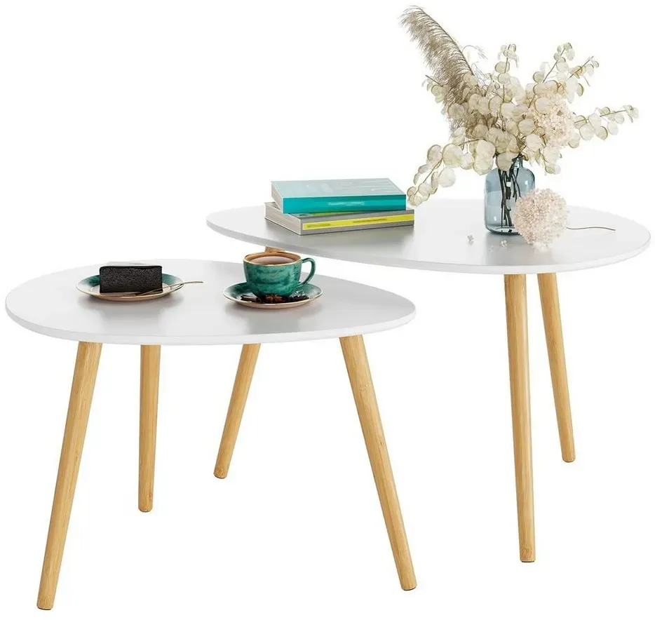 lieferbar-in 7-9 Werktagen bei dirHomfa Couchtisch, 2er Set Beistelltisch Sofatisch Groß und Klein weiß weiß
