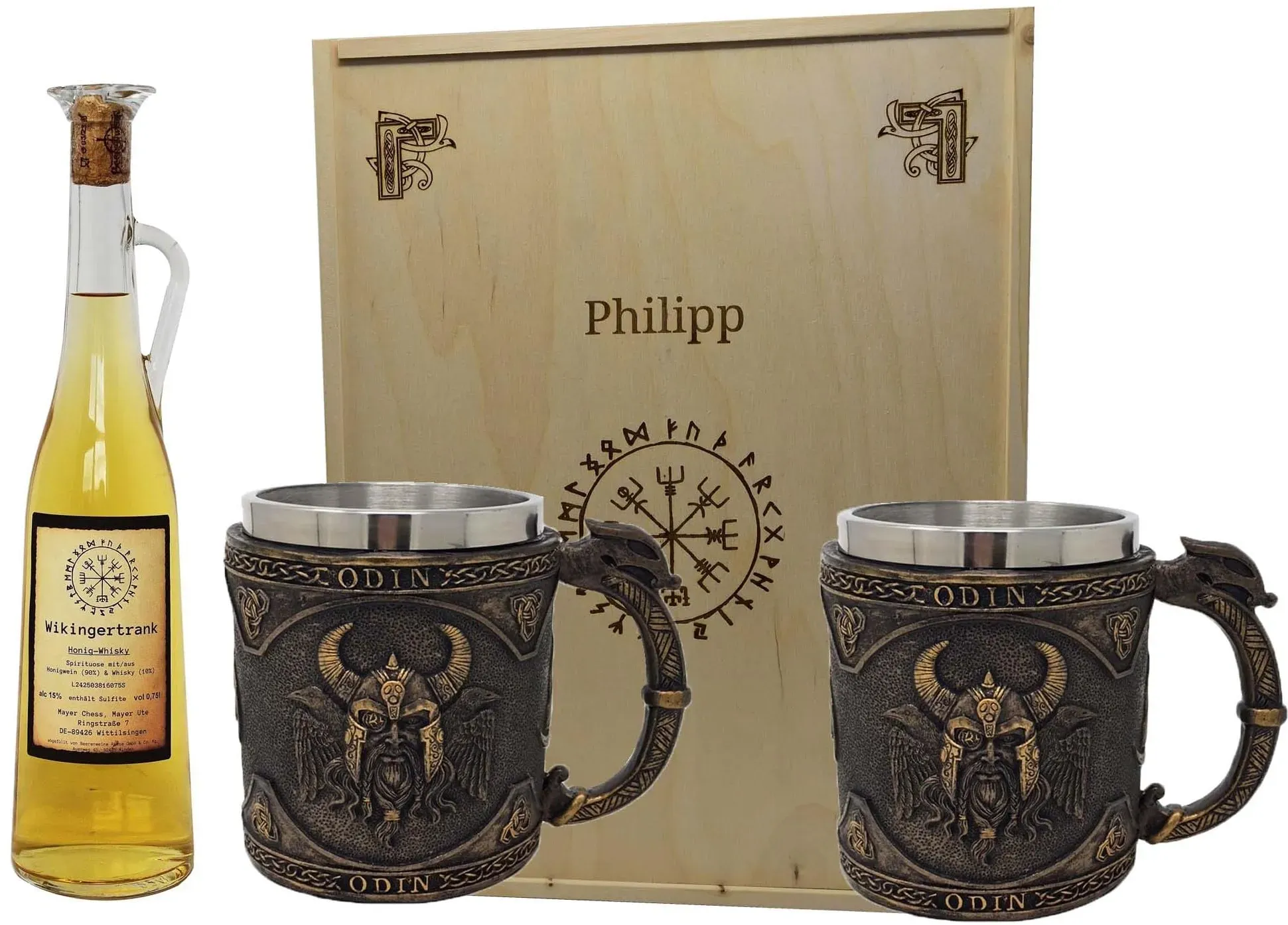 Dieses Angebot ist ein Beispiel für Angebote, die kürzlich auf dem eBay-Marktplatz in der Kategorie 257984 verfügbar waren. Bitte aktualisieren Sie die Suchergebnisse um aktuelle Angebote zu erhalten. Das MystiCalls Geschenkset mit Wikinger Kelch und Met Honig Whisky ist ein luxuriöses und einzigartiges Geschenk. ![]() ![]() MystiCalls Geschenkset Wikinger Kelch oder Krug inklusive Wikingertrank Met Honig Whisky in der Amphore mit Holzbox und Gravur - Met Honigwein personalisierbar verschiedene Varianten (2xKrug Odin)