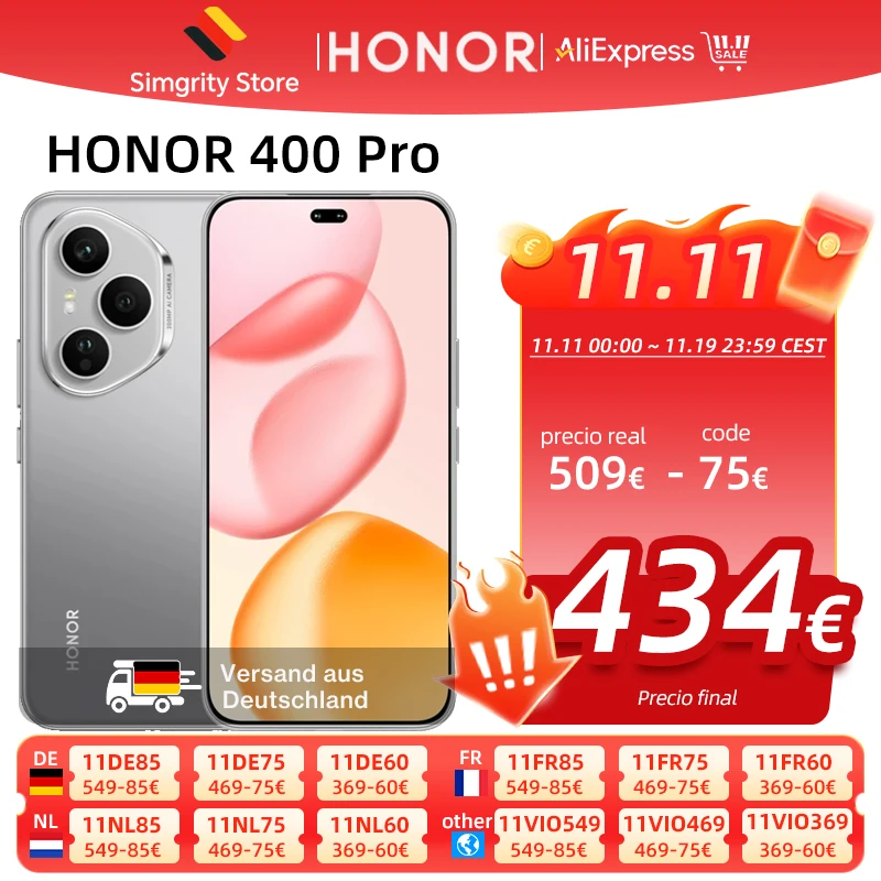 HONOR - Globale Version HONOR 400 Pro Smartphones 5g android 15 Snapdragon 8 Gen 3 6,7 Zoll AMOLED Display 200MP AI Kamera - bei de.aliexpress.com - aus Yadore Produktdaten Dieses eBay-Angebot ist das günstigste für ein entsperrtes Honor 400 Pro in Schwarz. ![]() ![]() Honor 400 - Pro 5G eBay 512GB 12GB RAM 200MP Dual SIM entsperrt schwarz