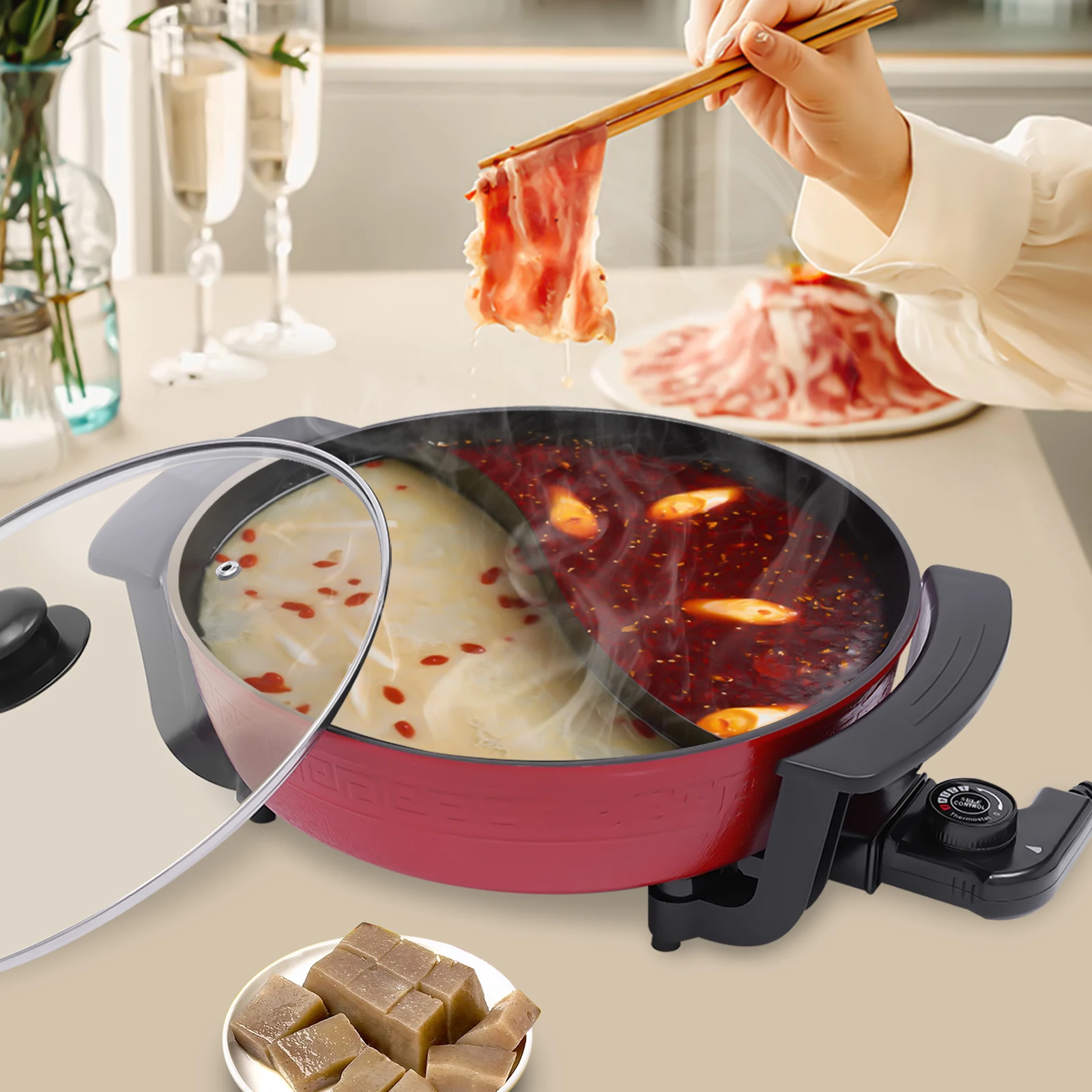 Der angezeigte Preis könnte seit dem letzten Update gestiegen sein - 220 V Elektroherd 6L Twin Hot Pot Shabu Induktions-Feuchtopf Lagertopf Kochgeschirr Elektrischer Hot Pot Antihaft-chinesischer Hot Pot - Zustand: NEW - bei Aliexpress DE - gefunden von Buycentral Dieser elektrische Hot Pot bietet mit 1360W und fünf einstellbaren Temperaturstufen viel Komfort und Flexibilität. ![]() Elektrischer Hot Pot, 1360W Hot Pot mit Trennwand, Chinesischer Küchen-Hotpot mit Glasdeckel, Fünf Einstellbare Temperaturstufen