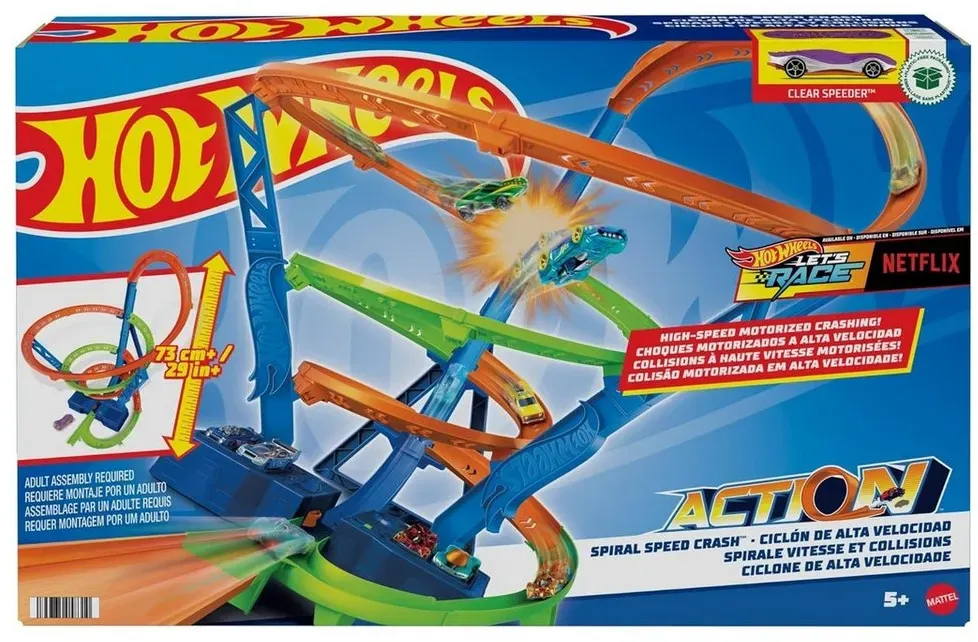 Zustand: Neu - Fahrzeuge & Rennwagen Fahrzeuge & Rennwagen für Kinder - Hot Wheels Mattel - HJT51 - EAN: 0194735094448 - Das actiongeladene Hot Wheels Crash-Spirale sorgt für rasanten Nervenkitzel in einem 73 cm hohen Trackset mit mehreren Crash-Zonen und batteriebetriebenem Beschleuniger. Kinder fahren mit ihrem Lieblingsfahrzeug von Hot Wheels auf den Beschleuniger, der es an die Spitze des Tracks katapultiert und dafür sorgt, dass die Autos ununterbrochen rasen, bis es zu einem Crash kommt. Je mehr Fahrzeuge ins Rennen geschickt werden, desto höher ist die Spannung und es kommt zu einem gewaltigen Zusammenstoß in einer der drei Crash-Zonen. Ein Hot Wheels Fahrzeug enthalten. Zusätzlich abgebildete Fahrzeuge separat erhältlich. Platz für bis zu 6 Fahrzeuge auf der Fläche des Batteriegehäuses. (Zusätzliche Fahrzeuge separat erhältlich.) Das perfekte Geschenke für Kinder ab n, die Crashs und Zusammenstöße mit Hot Wheels lieben. - 4 Händler im amazon.de Marketplace ![]() ![]() HOT WHEELS Crash-Spirale