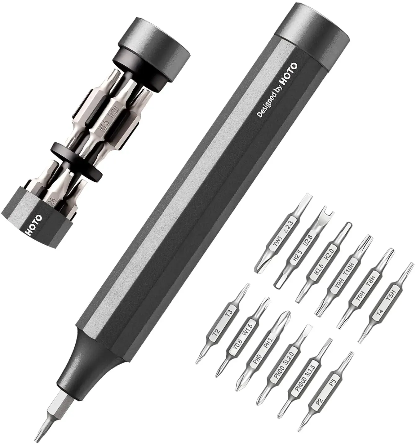 Hoto 24 META PreisvergleichMit dem Meta-Preisvergleich suchen Sie gleichzeitig bei den großen Preisvergleich Portalen!Jetzt live Suche nach hoto 24 starten! Hoto 24 KaufberatungBei 'HOTO 24' handelt es sich überwiegend um den HOTO 24-in-1 Precision Screwdriver Pen, ein manuelles Präzisionsschraubendreher-Set mit 24 hochwertigen S2-Stahlbits, das sich besonders für kleine Reparaturen an Elektronik, Brillen, Uhren und ähnlichen Geräten eignet[1][3][7][11]. Wichtige Produktmerkmale und Beliebtheit:
