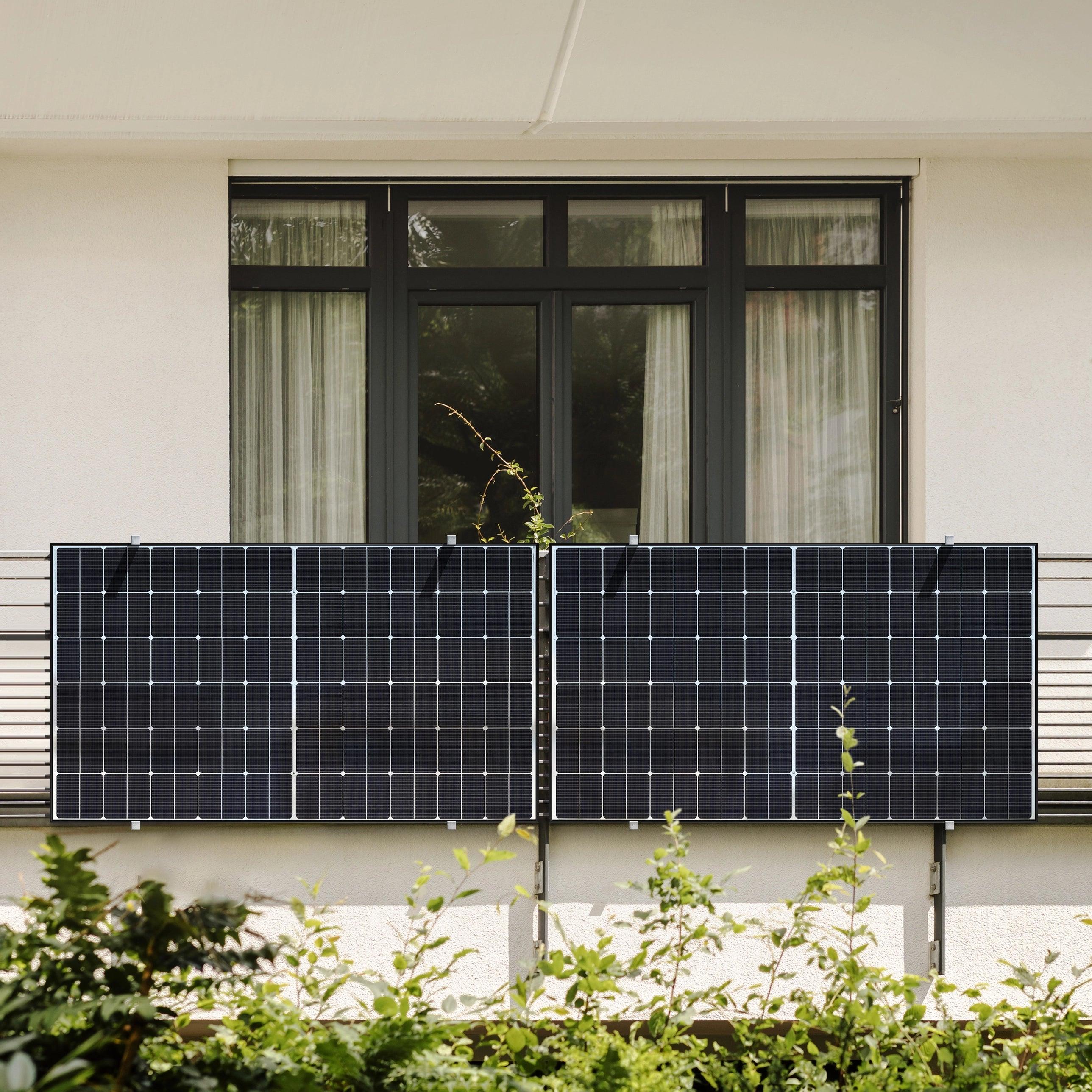 EAN: 4255909900746 - Balkonkraftwerk mit zwei bifazialen Solarmodulen (900 W) und Hoymiles 800-Watt-Wechselrichter mit integriertem WLAN für maximale Effizienz. Die Solarmodule Die bifazialen JA Solar Module (450 Wp) überzeugen mit 108 monokristallinen Zellen und einer Moduleffizienz von 22,3 %. Dank bifazialer Technologie nutzt das Modul Sonnenlicht von beiden Seiten und erzielt so zusätzliche Erträge auf reflektierenden Oberflächen. Die robuste Bauweise und der breite Temperaturbereich von 40 C bis +85 C machen das Modul besonders langlebig und wetterfest. Maße: 1762 1134 30 mm Gewicht: 22 kg Der Wechselrichter Der Hoymiles HMS-800W-2T ist leistungsstark, flexibel und ideal für Balkonkraftwerke mit bis zu 4 Solarmodulen. Die Ausgangsleistung lässt sich einfach zwischen 600 und 800 W einstellen und somit die Leistung deiner Anlage anpassen. Mit integriertem WLAN und kompaktem Design ist er schnell einsatzbereit. Dank IP67-Schutzklasse und robustem Gehäuse trotzt der HMS-800W-2T jeder Witterung und hält Temperaturen bis +65 C problemlos stand. Die integrierte MPP-Technologie sorgt für optimale Erträge, während Schutzfunktionen wie 6000 V überspannungsschutz und die Einhaltung relevanter Normen (VDE-AR-N 4105, EN50549-1) für Sicherheit sorgen. Maße: 261 180 35 mm Gewicht: 3 kg - bei kaufland.de - aus Yadore Produktdaten Dieses Komplettset bietet ein 900 Watt Balkonkraftwerk mit Balkonmontage zu einem sehr attraktiven Preis. ![]() kaufland.d e Balkonstrom 900 Watt, Balkon, Bifazial Komplettset, Balkonkraftwerk, Hoymiles HiBattery 1920 AC