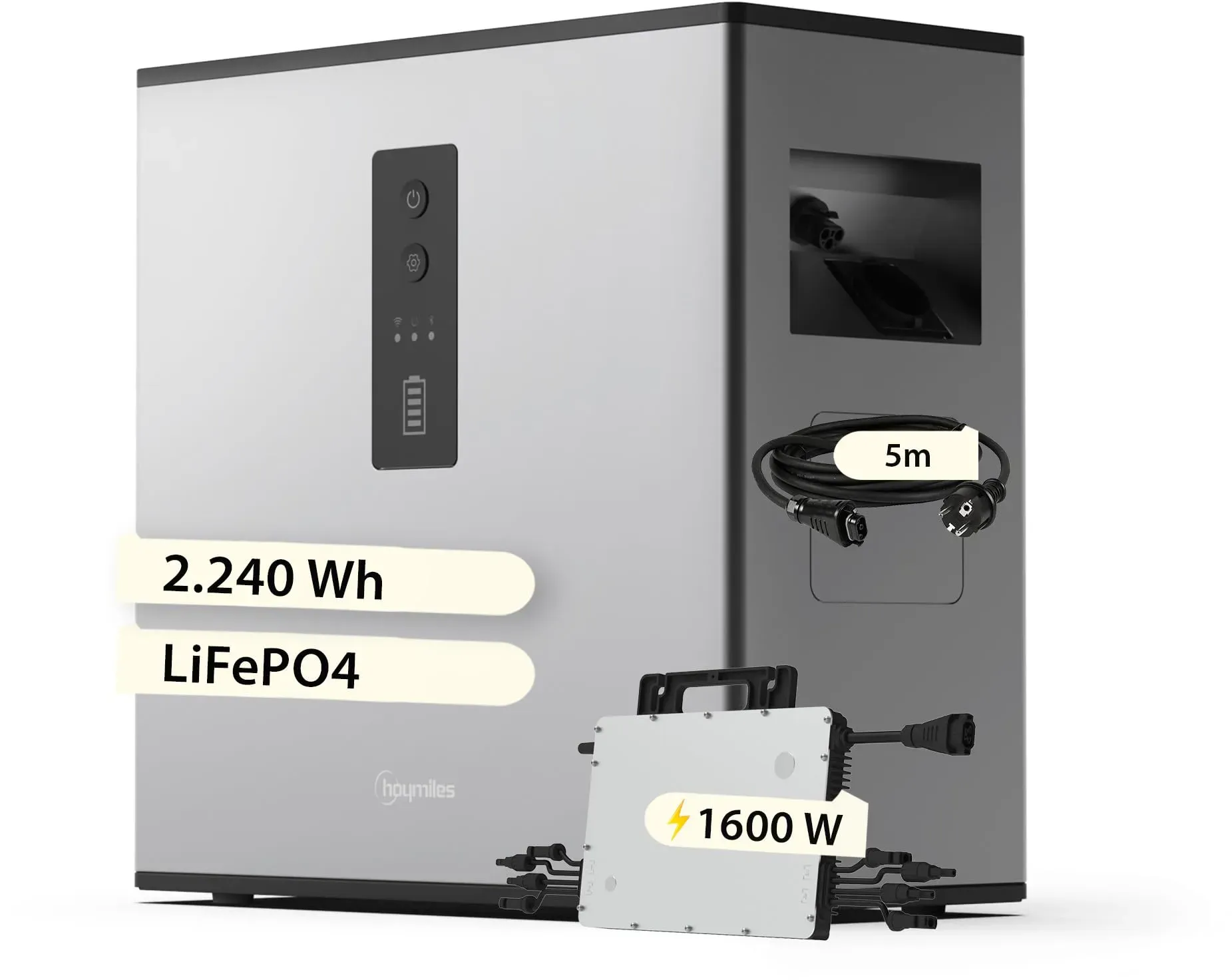 Kategorie: Stromspeicher - Hoymiles - GTIN:4262361723745 - Private Stromerzeugung: Der Hoymiles MS-A2 mit 800 W 2T Wechselrichter & integriertem WiFi speichert überschüssigen Solarstrom & sorgt für zuverlässige Energieversorgung bei dir zu Hause Effiziente Energienutzung: Mit bis zu 97 % Wirkungsgrad & einer Batteriekapazität von 2.240 Wh nutzt der MS-A2 Sonnenenergie optimal. Intelligentes Energiemanagement minimiert Verluste & steigert deine Ersparnis Hochwertiges Set: Das Set umfasst 1x Hoymiles MS-A2 Solarbatterie mit 2.240Wh, einen 800W 2T Wechselrichter & das notwendige Kabel. Dank kompakter Bauweise flexibel einsetzbar auf Balkon, Dach oder Terrasse effizient & stilvoll Einfache Installation: Das steckerfertige Solarspeicher-Set enthält alle benötigten Kabel, sodass du ohne Elektriker schnell & unkompliziert Solarenergie nutzen kannst Langlebig & Sicher: Der Hoymiles MS-A2 nutzt LFP-Batterien & erfüllt die IEC 62619-Norm, was für höchste Sicherheit sorgt. Mit über 6000 Ladezyklen bietet er eine langlebige & zuverlässige Stromversorgung - 899,00 Euro bei Amazon Marketplace CE - gefunden von billiger.de Dieses Komplettset mit 2240W Balkonkraftwerk und Hoymiles MS-A2 Batteriespeicher-Wechselrichter ist eine umfassende Lösung für die Stromerzeugung und -speicherung. ![]() ![]()
