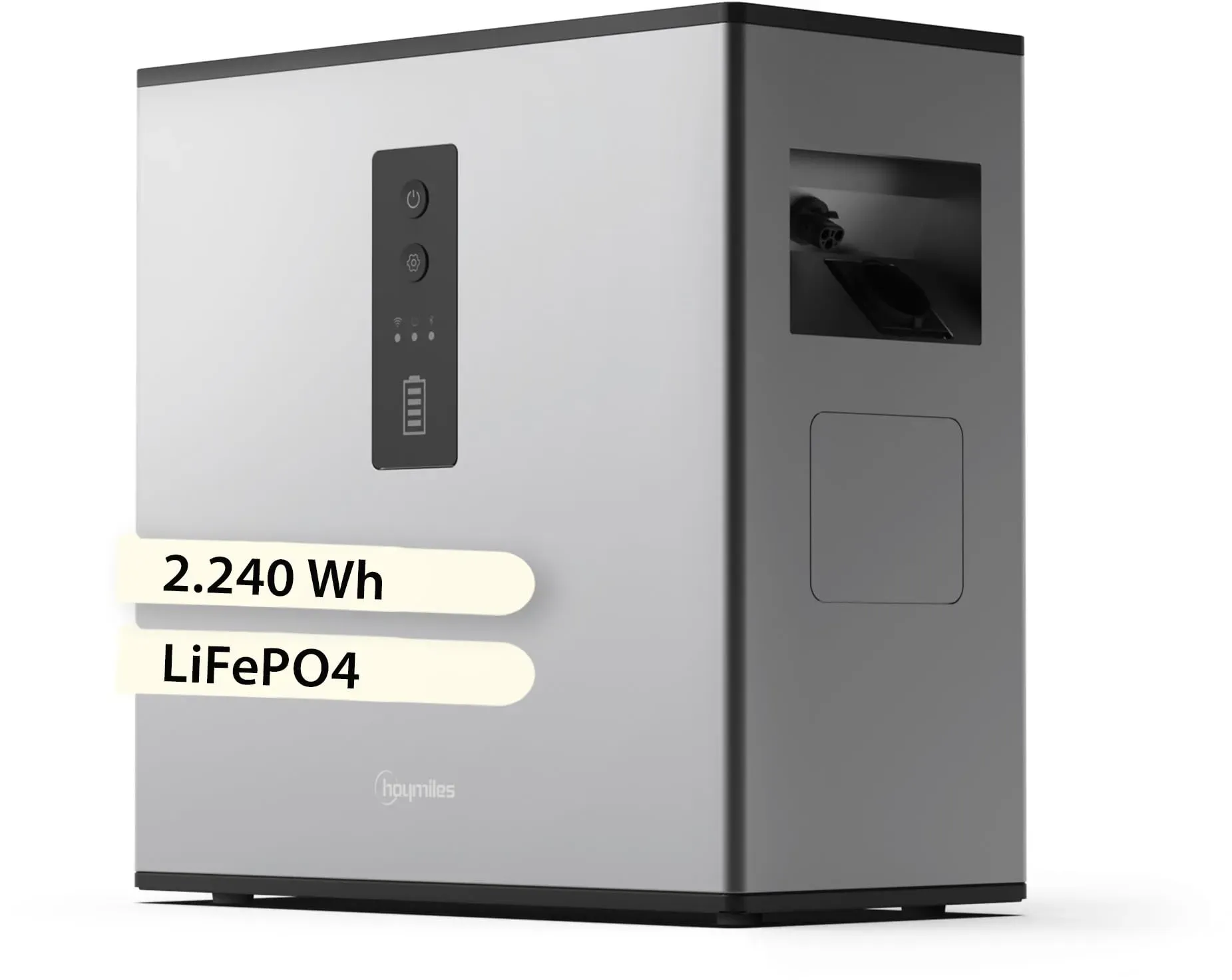 Kategorie: Stromspeicher - Hoymiles - GTIN:6975514332586 - Hoymiles Mikro-Solarspeicher Komplettset mit 2x Aiko 460W Die smarte Speicherlösung für dein BalkonkraftwerkSteigere deine Energieunabhängigkeit mit dem Hoymiles MS-A2 Solarspeicher für Balkonkraftwerke. In Verbindung mit zwei Aiko 460W Neostar 2S+ Full Black Glas/Glas-Modulen nutzt du deine Sonnenenergie nicht nur tagsüber, sondern auch nachts dank integrierter 2,24 kWh LiFePO4-Batterie und netzunabhängigem Betrieb bei Stromausfall.Deine Vorteile auf einen Blick AC-gekoppelter Speicher einfach zwischen Wechselrichter und Netz klemmen Blitzschnelle Inbetriebnahme in nur 7 Sekunden Plug & Play Kompatibel mit allen gängigen Mikro-Wechselrichtern (z. B. Hoymiles, Growatt, Deye) Intelligente Energieverteilung via App Echtzeitüberwachung, TOU-Modus & Fernsteuerung Integrierter 2,24 kWh LiFePO4-Akku 6000 Zyklen, langlebig & sicher Netzunabhängiger Betrieb bei Stromausfall bis 800 W Dauerleistung, 1200 W Peak Für den Außenbereich IP65-zertifiziert, -20 C bis +55 CIdeal für dein BalkonkraftwerkDieses Set ist speziell für den Balkonbetrieb konzipiert und besteht aus:2x Aiko 460W Neostar 2S+ bifaziale Glas/Glas Module mit ABC-Technologie & Full Black DesignHoymiles MS-A2 Mikro-Solarspeicher mit 800 W AC-Leistung & integrierter Backup-SteckdoseIntegriertes WLAN & Bluetooth zur Steuerung via App oder WebplattformTechnische HighlightsKomponenteDetailsBatterie2240 Wh, LiFePO4, 6000 Zyklen, IP65, natürliche ... Der Hoymiles Hoyhome HV 3,84kWh (B-Pack) ist ein modulares System mit Standfuß, ideal für eine flexible Installation. ![]() ![]()