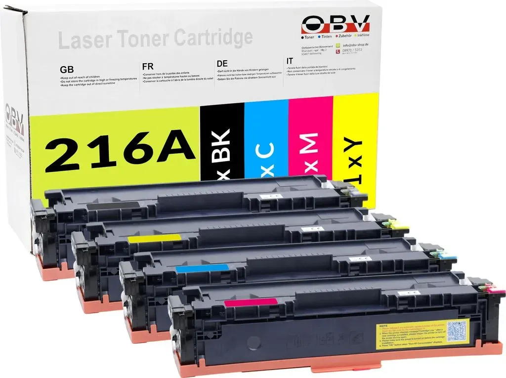Kategorie: Toner - OBV - GTIN:4260705493705 - Dieses kompatible Toner-Set ersetzt die HP 216A Serie (W2410A bis W2413A) in Schwarz, Cyan, Magenta und Gelb. Alle Toner sind mit Chip und Füllstandsanzeige ausgestattet und liefern hochwertige Ausdrucke bei gleichzeitig niedrigem Seitenpreis perfekt für Büro und Home-Office.Kompatibler Ersatz für: HP 216A W2410A (BK), W2411A (C), W2412A (Y), W2413A (M)4 Farben im Set: Schwarz, Cyan, Magenta, GelbKapazität: Schwarz ca. 1.050 Seiten, je Farbe ca. 850 Seiten (5 % Deckung)Mit Chip und FüllstandsanzeigeKeine Originalprodukte 100 % kompatibelKompatibel mit:HP Color LaserJet Pro MFP M183fwHP Color LaserJet Pro M182n / M182nwHP Color LaserJet Pro M155a / M155nwAlle Markennamen dienen nur zur Zuordnung. Kein Originalprodukt. - 85,35 Euro bei Kaufland.de - gefunden von billiger.de Ein weiteres 4er-Toner-Set mit Chip, das eine gute Kompatibilität und ein gutes Preis-Leistungs-Verhältnis bietet. ![]() ![]() [MIT Chip] - 4x Toner eBay compatible with HP 216A Color LaserJet Pro MFP M155a M183FW