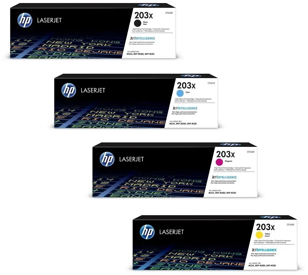 Kategorie: Toner - HP - GTIN:0190781107125 - HP Toner-Set 203x Multipack Cyan Magenta Gelb Schwarz Color LaserJet M254 M280 M281 M281fw M281fdn Toner Tonerset 203 Patrone Kartusche CF540X CF541X CF542X CF543X - HP Power Partner - 426,00 Euro bei c-nw - gefunden von billiger.de Dieses 4er-Set ist ideal für Nutzer, die alle Farben im Original von HP benötigen und dabei von einem Set-Preis profitieren möchten. Bueroshop2 4.de