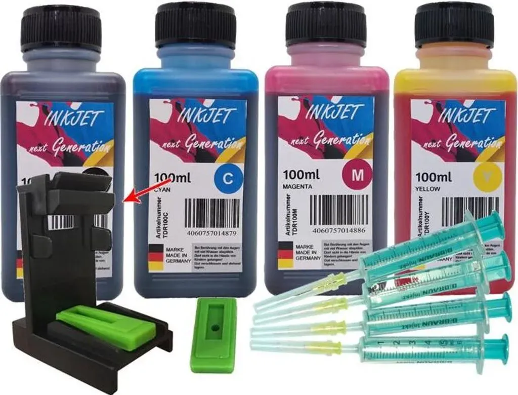 Kategorie: Druckerpatronen - Dr. Inkjet - GTIN:4060757015562 - Spare bis zu 80% an Nachfolgekosten und leiste einen Beitrag zum Umweltschutz. Mit jeder Druckerpatrone die nachgefüllt wird, muß eine weniger hergestellt und um die halbe Welt transportiert werden. Das spart enorm Rohstoffe und jede Menge CO2. Im Set ist Tinte zum Befüllen der schwarzen und farbigen Patrone enthalten. Dazu erhalten Sie das nötige Zubehör an Nachfüllwerkzeug inkl. Luftabzugsabdapter.Luftabsaugclip, Adapter- oder auch Luftabsorber genannt:Das Nachfüllen von Druckkopfpatronen selbst, ist mehr oder weniger recht einfach. Allerdings bildet sich oftmals eine Luftblase zwischen der Tintenkammer und dem Zulauf zum Druckkopf.In früheren Zeiten bedeutet das oftmals das Aus für die nachgefüllte Druckerpatrone, da es keine Hilfsmittel gab, um diese Luftblase aus der Patrone zu holen. Eine manchmal funktionierende Lösung war, die Patrone ein paar Tage stehen zu lassen und darauf zu hoffen, dass die Luftblase von alleine verschwindet. Naja, der Erfolg war recht mäßig. Eine andere Variante war, die Patrone kräftig zu schütteln. Aber auch hier war der Erfolg bescheiden.Der sicherste Weg die jeweilige Patrone mit Erfolg aufzufüllen ist, diese nicht leer laufen zu lassen, sondern dann zu befüllen, sobald sich das Schriftbild verändert. Lieber einmal mehr befüllen, als einmal zu wenig.Heute ist das kein Problem mehr, es gibt Luftabzugsclips. Die jeweilige Patrone wird einfach in den passenden Luftabsorber ... Ein beliebtes Original HP Multipack, das eine zuverlässige Leistung für gängige HP Drucker verspricht. ![]() ![]()