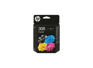 Auf Lager Versand durch AmazonHP 308 Tintenpatronen, Schwarz, 3 Farben, 2 Stück