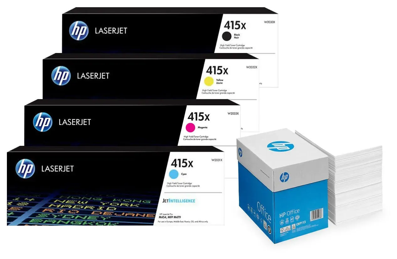 Verfügbarkeit: Auf Lager, sofort versandfertig Lieferzeit 1-2 Werktage - Kategorie: Toner - HP - GTIN:4260730617220 - Bundle mit HP Original 415X Toner 4er Multipack + 2.500 Blatt HP Kopierpapier hochweiß - 995,60 Euro bei playox - gefunden von billiger.de ![]() ![]() Bundle mit HP Original 415X Toner 4er Multipack + 2.500 Blatt HP Kopierpapier hochweiß