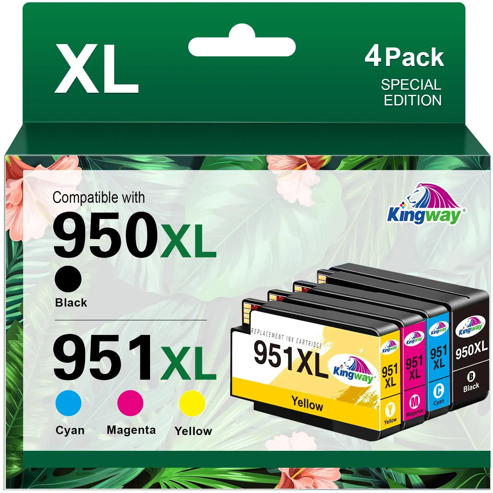 Zustand: Neu - Tintenpatronen für Drucker Tintenpatronen für Tintenstrahldrucker - Nestink - 950XL-4PK - - Lieferumfang: 1 x Schwarz 950 XL, 1 x Cyan 951 XL, 1 x Magenta 951 XL, 1 x Gelb 951 XL, 1 x Bedienungsanleitung (insgesamt 4 Patronen) Kompatible Drucker - Kompatibel mit HP OfficeJet Pro 8600 Patronen, HP Officejet Pro 8620 Patronen, HP OfficeJet Pro 8600 Plus Patronen, HP Officejet Pro 8610 8100 8615 8616 8625 8630 8640 8660 251dw 276dw 271dw Drucker Hohe Seitenausbeute - Jede Hochleistungspatrone 950xl schwarz druckt ungefähr 2300 Seiten, jede Farbpatrone druckt ungefähr 1500 Seiten (bei 5% Deckung auf A4-Papier) Hochwertiger Druck - Genießen Sie hochwertige Druckergebnisse und maximale Farbtreue für Ihre Bilder mit den Nestink 950 xl/951xl Multipack Druckerpatronen mit hoher Reichweite Hinweis Diese Patrone ist mit vielen Modellen kompatibel und kann leicht mit anderen Modellen verwechselt werden. Bitte überprüfen Sie die Liste der kompatiblen Druckermodelle, um sicherzustellen, dass sie für Ihr Gerät geeignet ist - Verkäufer: Nest INK im amazon.de Marketplace Dieses Angebot ist mit 16,99 Euro das günstigste in der Auswahl und bietet ein 4er-Pack kompatibler Patronen, ideal für preisbewusste Käufer. ![]() ![]() Kingway 950XL 951XL Kompatible für HP 950 XL 951 XL Multipack Druckerpatronen für HP Officejet Pro 8600 Patronen 8620 8610 8100 8615 8625 8630 8640 8660 276dw 251dw (Schwarz Cyan Magenta Gelb)